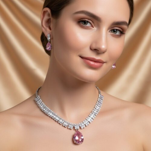 A luxurious 2‑piece jewelry set featuring a sparkling zircon necklace and matching earrings — elegant, versatile, and perfect for weddings, parties, or everyday chic style.