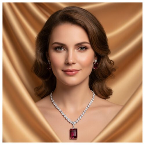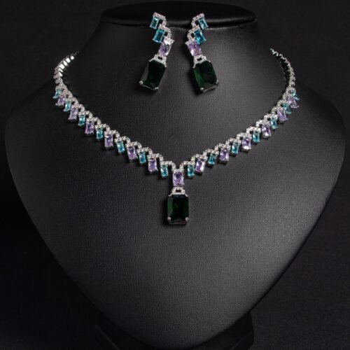 Elegant European & American‑style zircon necklace with matching square pendant earrings — a high‑end bridal and fashion jewelry set perfect for weddings, banquets, parties, dates, and everyday chic style.