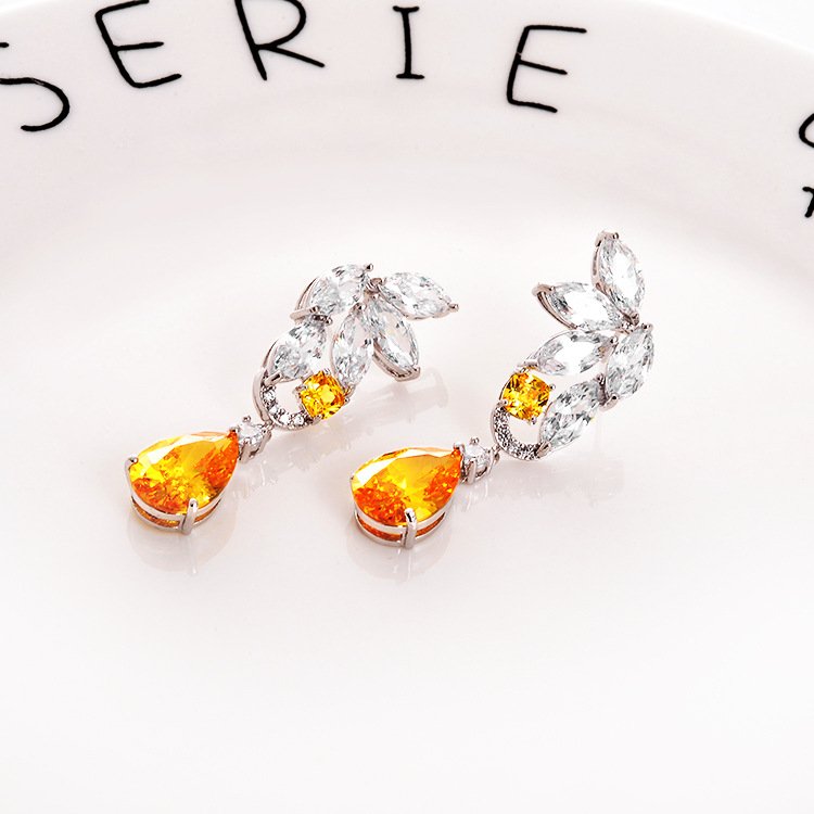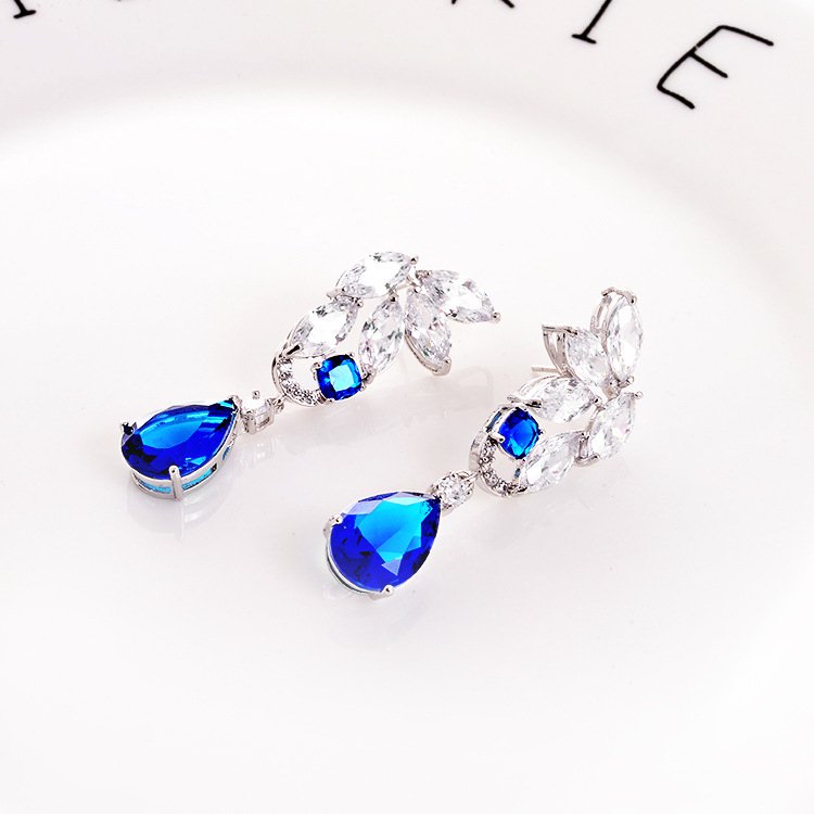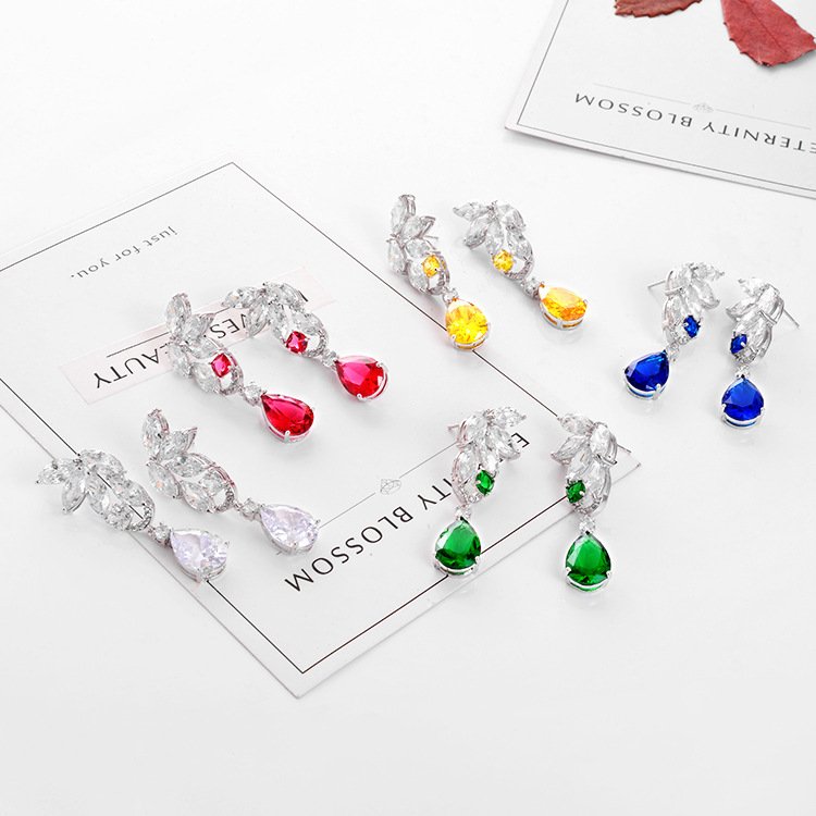 2023 Luxury Long Colorful Water‑Drop Zircon Earrings — Elegant Bridal & Wedding Drop Earrings