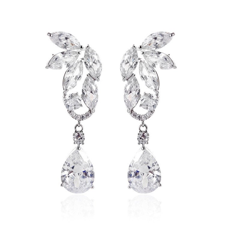 A stunning pair of luxury long water‑drop zircon earrings with a refined sparkle — designed for brides, weddings, special occasions, and everyday fashion that adds graceful movement and glamour.