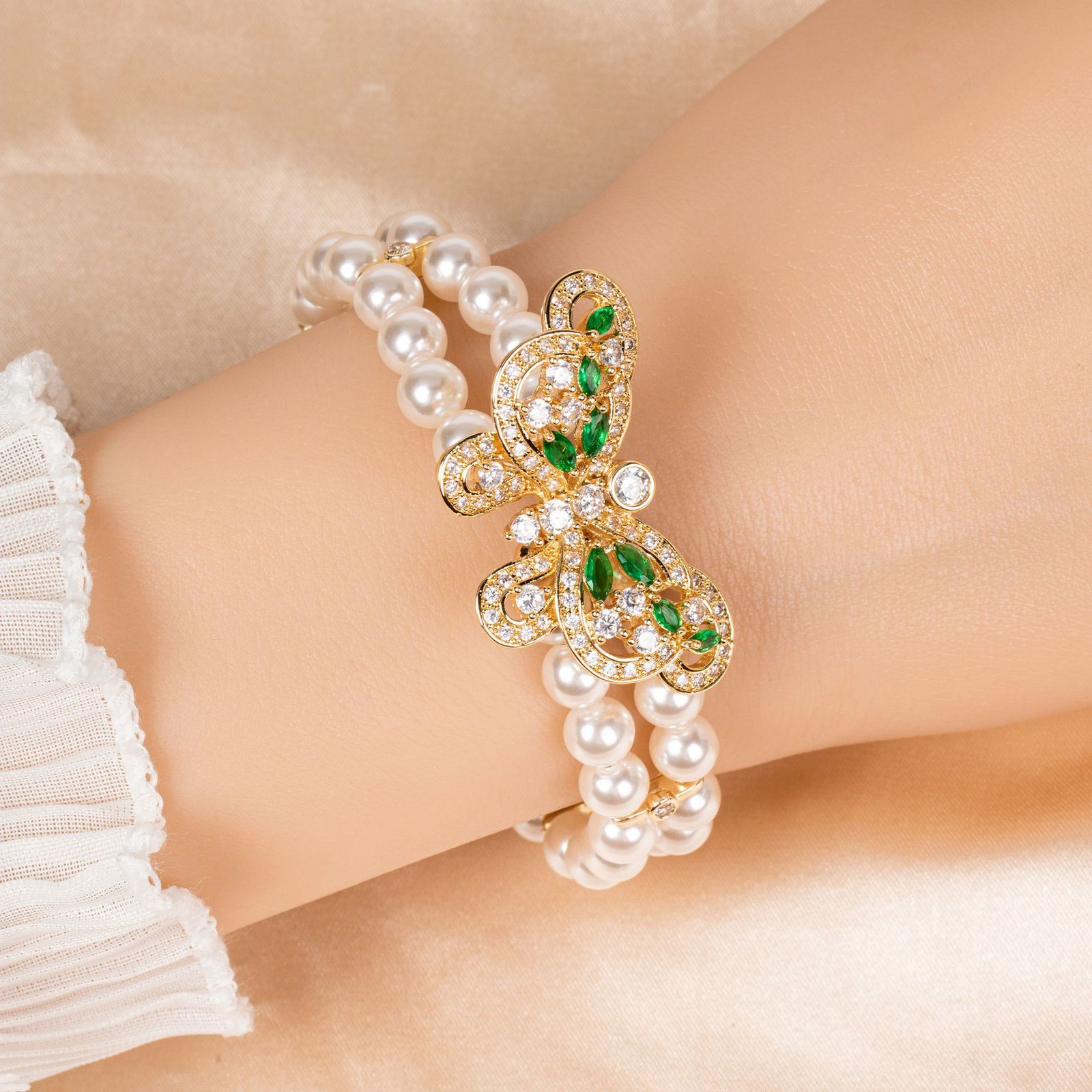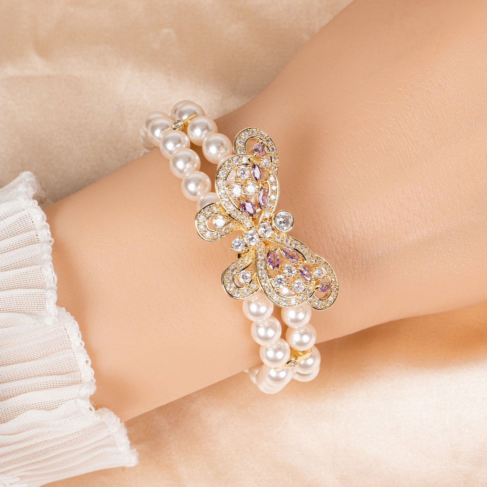 Zircon-Inlaid Butterfly Detail – Sparkling accents bring eye-catching shine and playful charm.