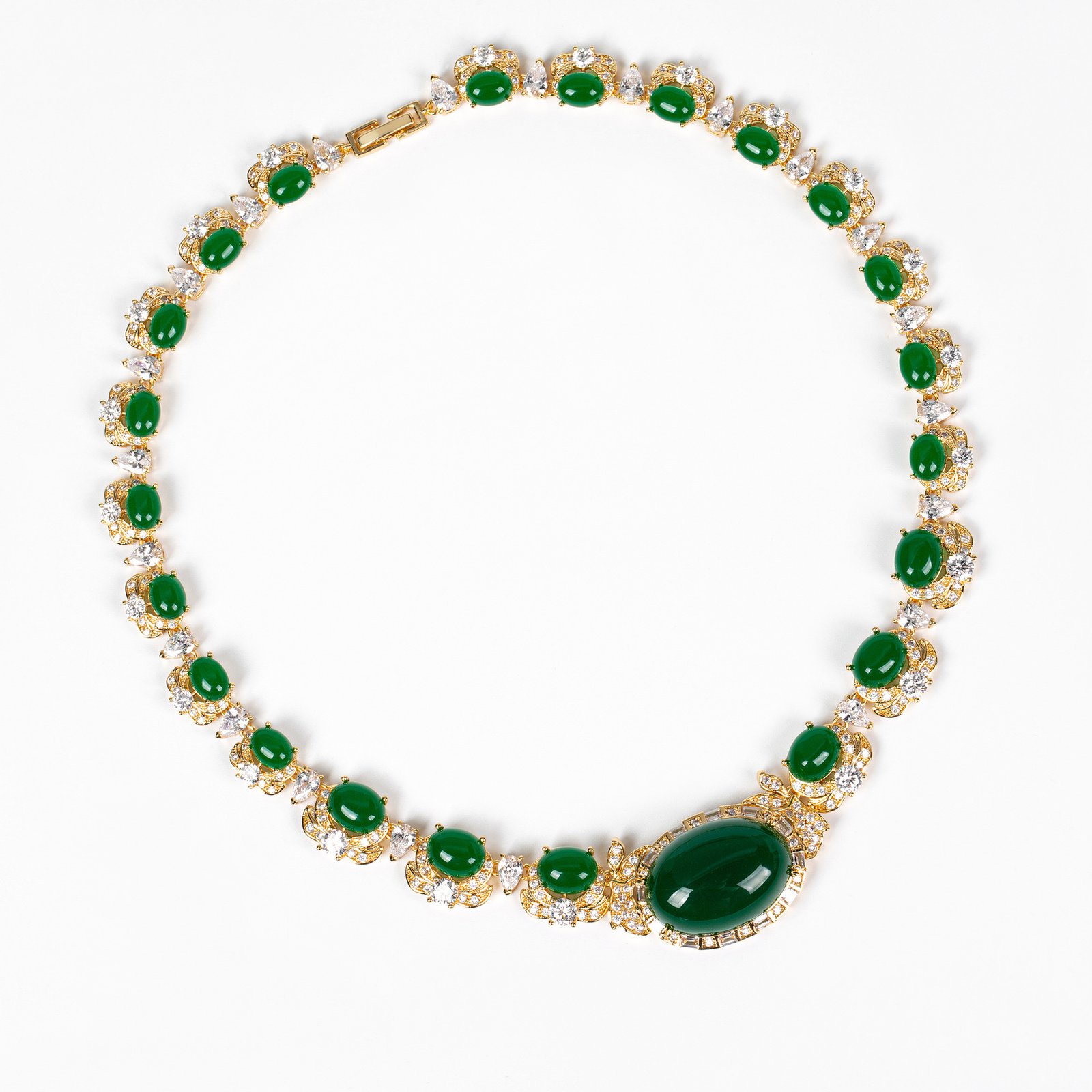 Inspired by refined Chinese fashion aesthetics, this necklace features a brilliant zircon-inlaid egg-surface pendant with a captivating emerald-like centerpiece, designed to catch and reflect light with each movement. Suspended on a delicate clavicle-length chain, it sits gracefully at the collarbone, adding a subtle yet striking sparkle that complements both formal and casual outfits.