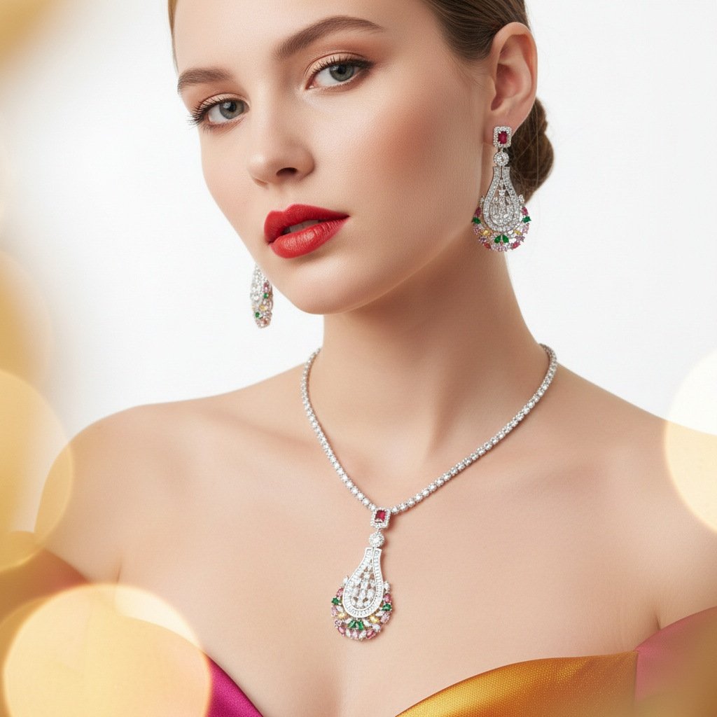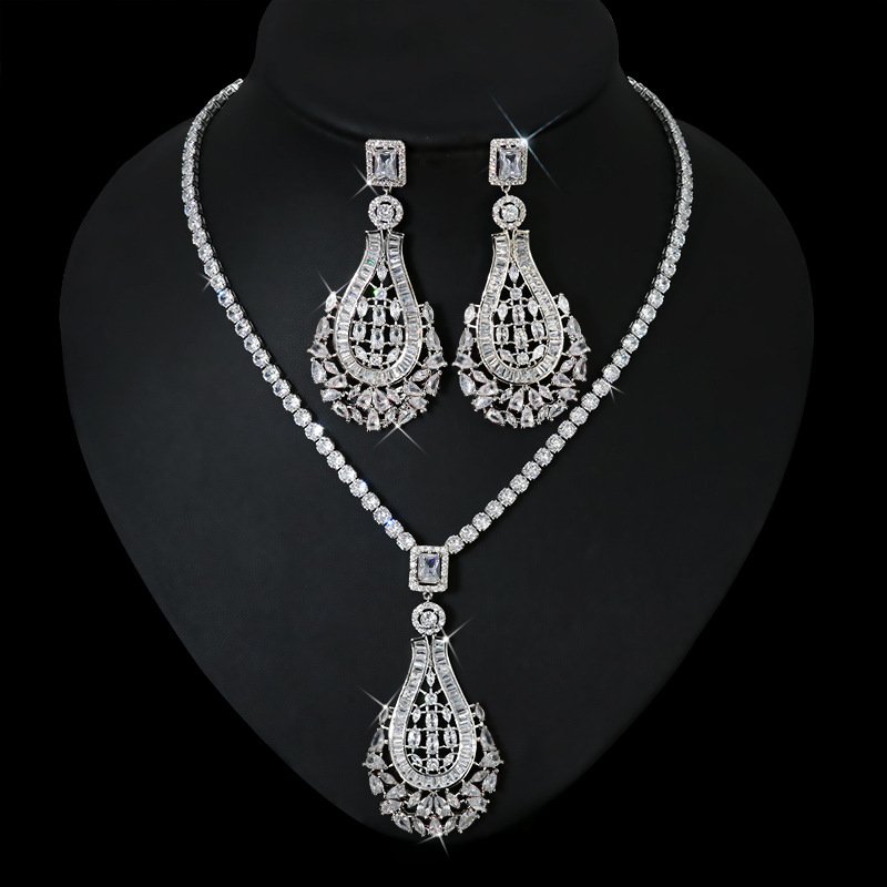 Make a bold fashion statement with this European & American Bride Zircon Necklace & Earrings Set — a versatile jewelry ensemble that blends high‑end elegance with contemporary street style.