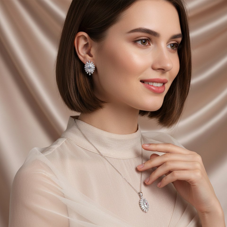 Crafted for both everyday elegance and special occasions, this necklace sits beautifully along the collarbone, while the matching earrings elevate your style with brilliant shimmer. Perfect for weddings, parties, banquets, or gifting to someone special.