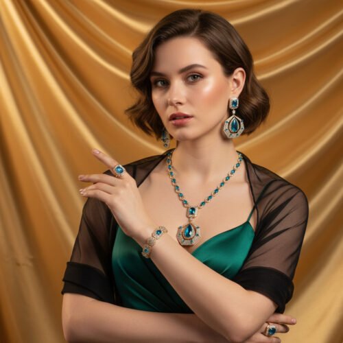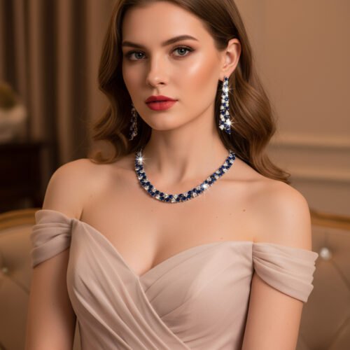 Inspired by classic European and American fashion aesthetics, this exquisite set features dazzling retro-style zircon stones that shimmer with every movement. Whether you’re walking down the aisle, attending a banquet, or celebrating at an upscale event, this coordinated set adds refined charm and radiance to your outfit.