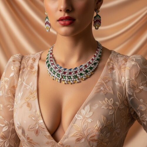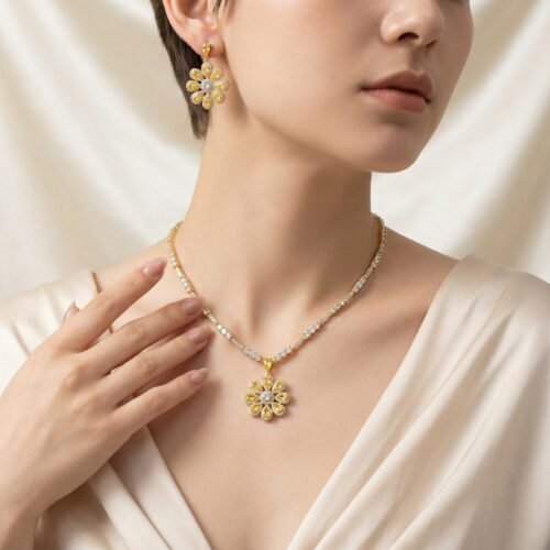This jewelry set blends tradition with modern glow — a perfect balance of luxury and charm that enhances both bridal and formal outfits with a radiant finish.