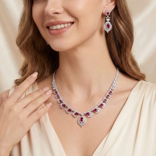 • 👰 Complete Set: Beautiful matching necklace and earrings to complete your formal or bridal ensemble.