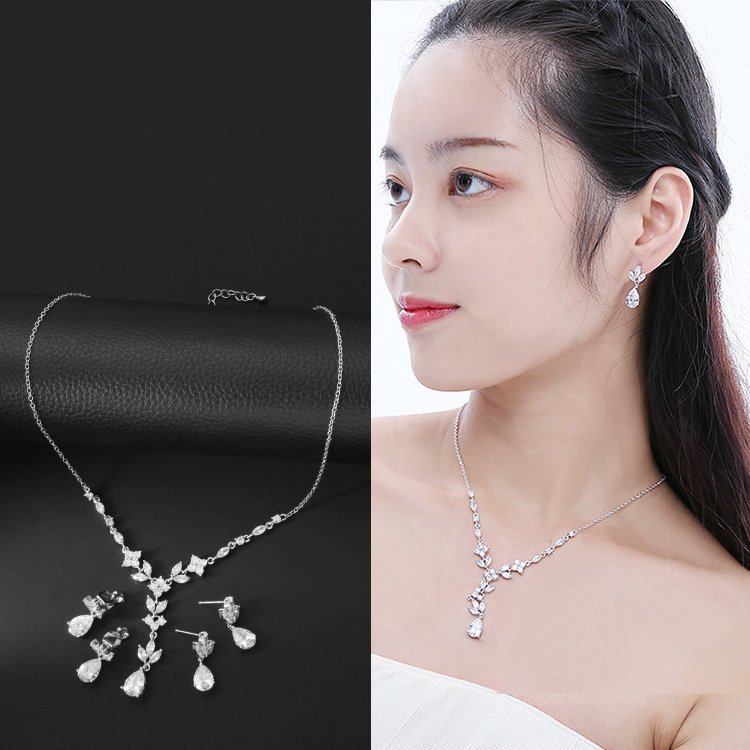 Add a touch of radiant elegance and timeless charm to your special moments with this European & American Zircon Necklace & Earrings Jewelry Set — a beautiful ensemble crafted for women who love light-luxury sparkle and refined style.