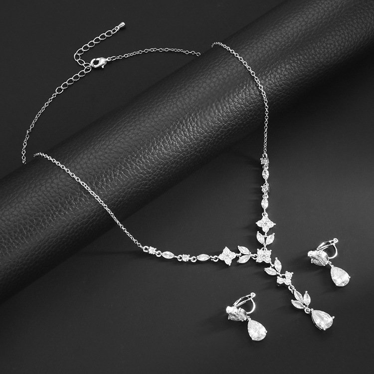 Designed with inspiration from European and American fashion aesthetics, this set pairs a delicate zircon-accented clasp chain necklace with matching sparkling zircon earrings, delivering brilliant shine from every angle. The necklace sits gracefully along the clavicle, enhancing your neckline, while the earrings frame your face with refined elegance.