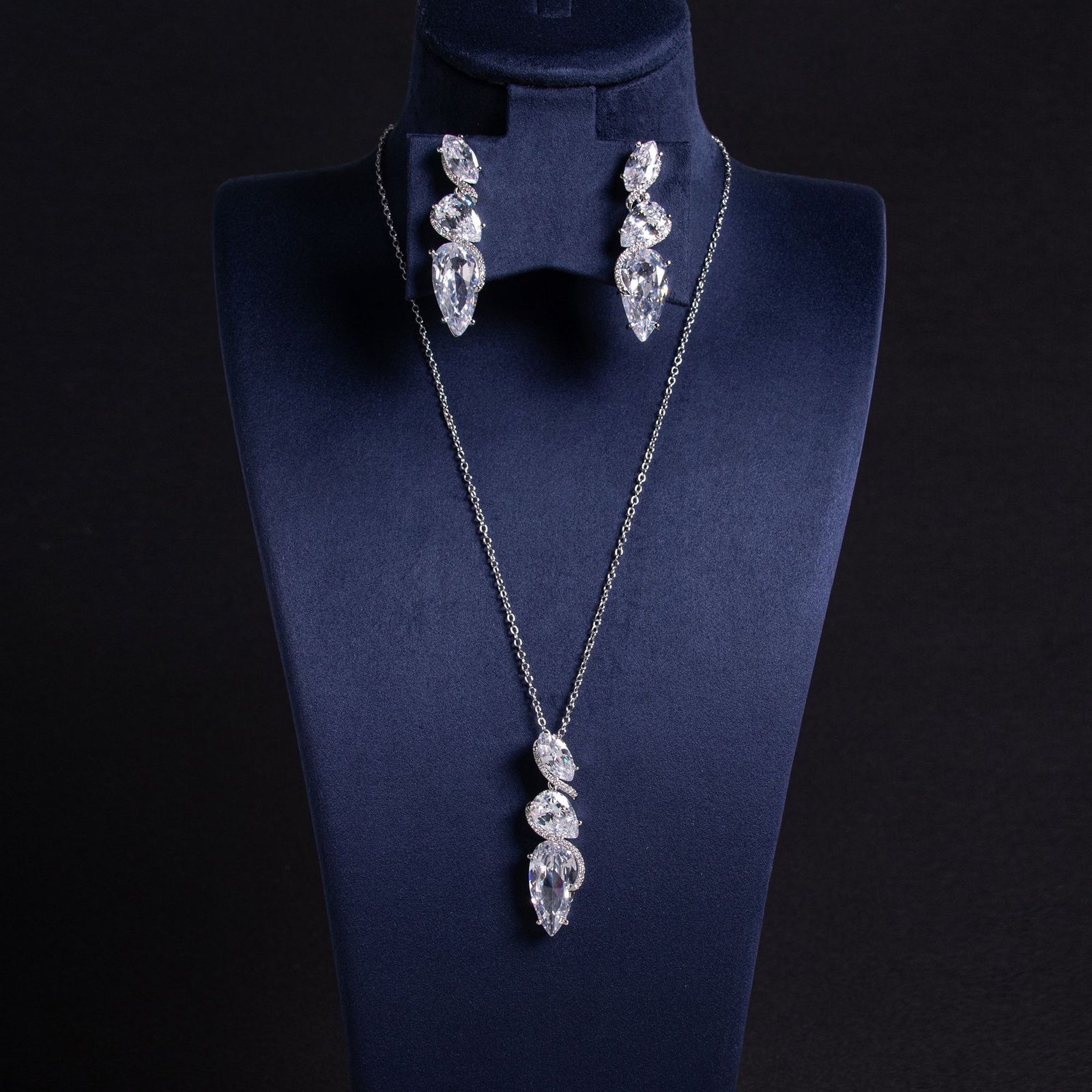 • 💎 Geometric Water-Drop Zircon Pendant: Eye-catching design with brilliant zircon stones for radiant shine.