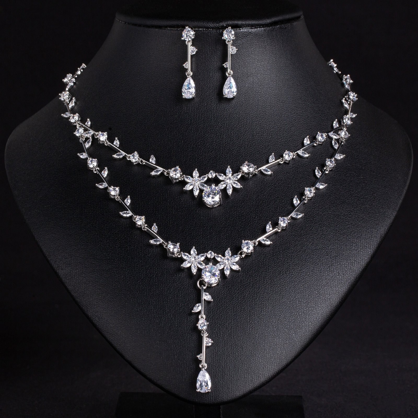 Inspired by French retro fashion, this stunning necklace features two delicate layered chains that sit gracefully along the clavicle. Each layer is adorned with diamond-like zircon floral elements that cascade into elegant tassels, catching the light with every movement and creating a radiant, graceful sparkle.