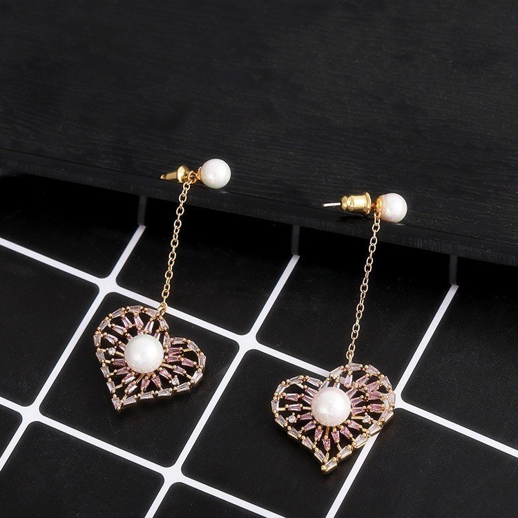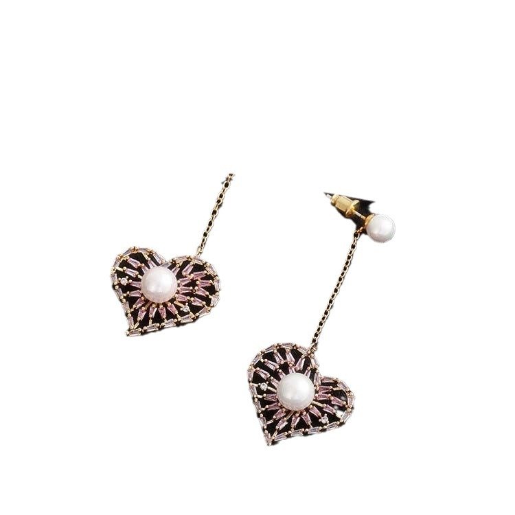 Heart-Shaped Pearl Tassel Earrings – High-End Elegant Long Chain Drop Earrings for Women