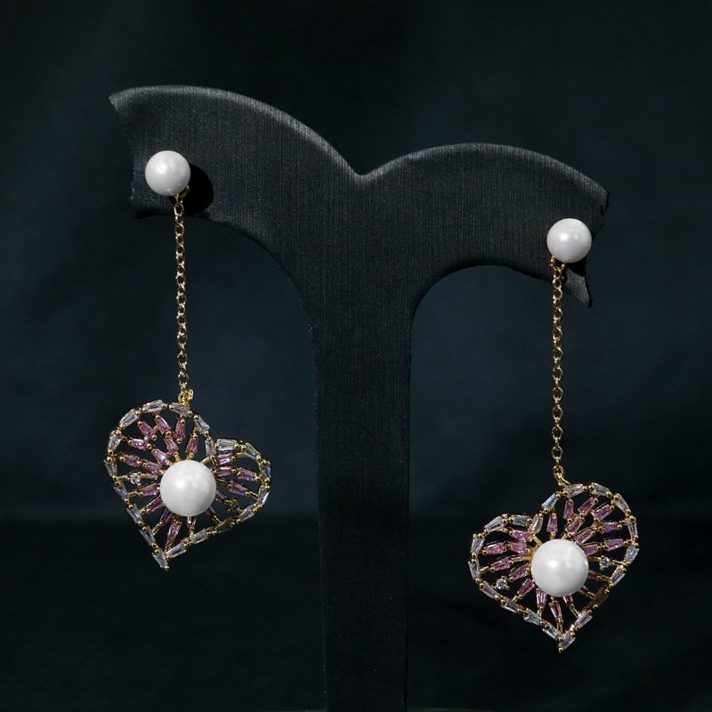 Elegant heart-shaped pearl tassel earrings with long chain design — perfect for evening wear, parties, weddings, and a luxurious statement look.