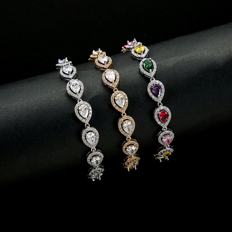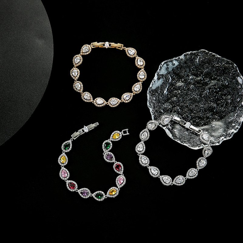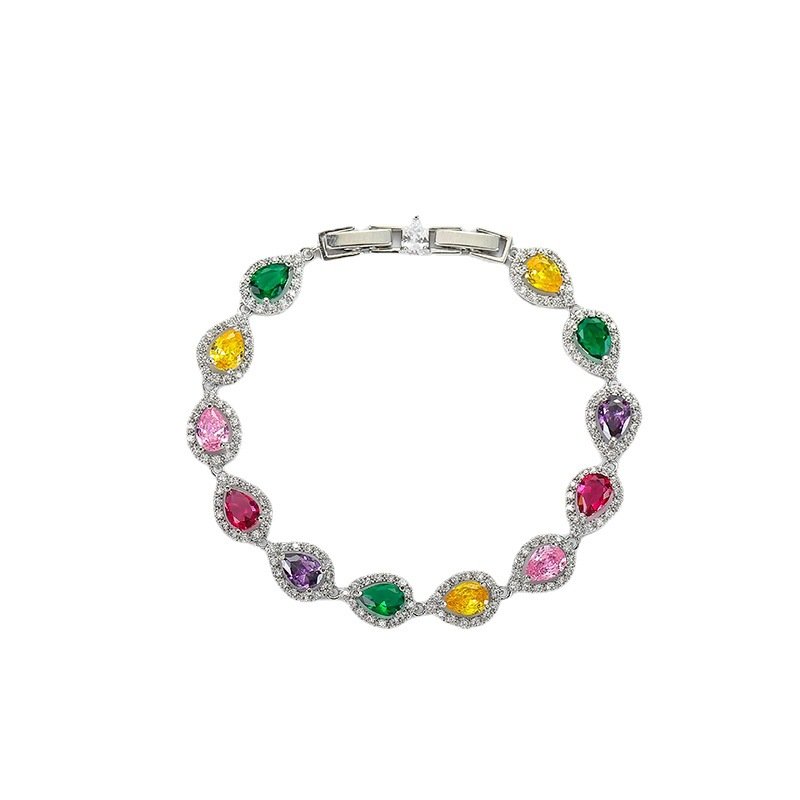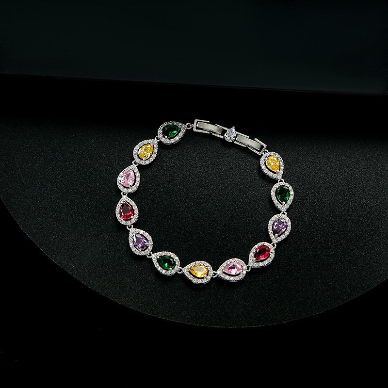 High‑End Colorful Water‑Drop Zircon Bracelet – Elegant European & American Style