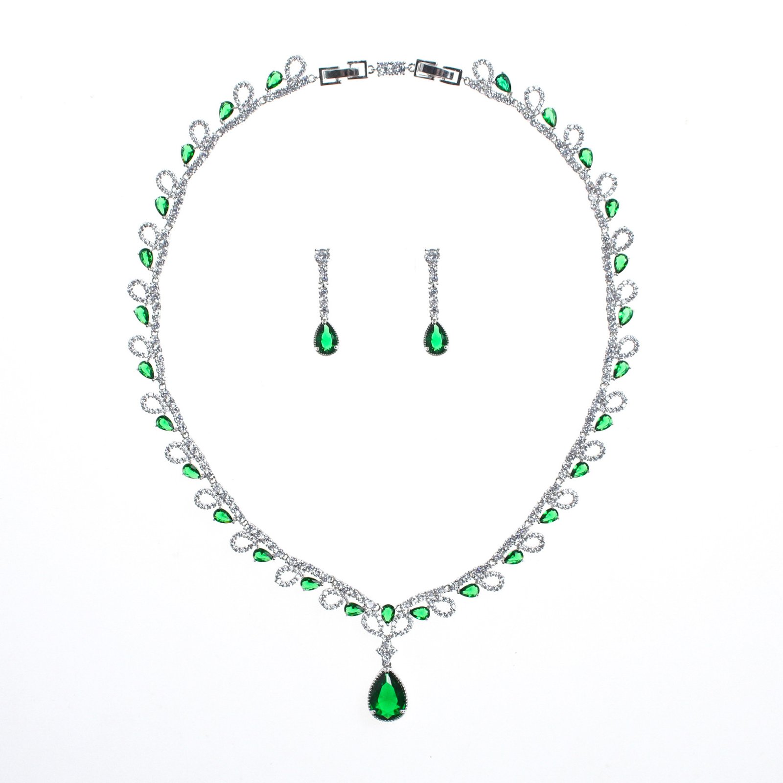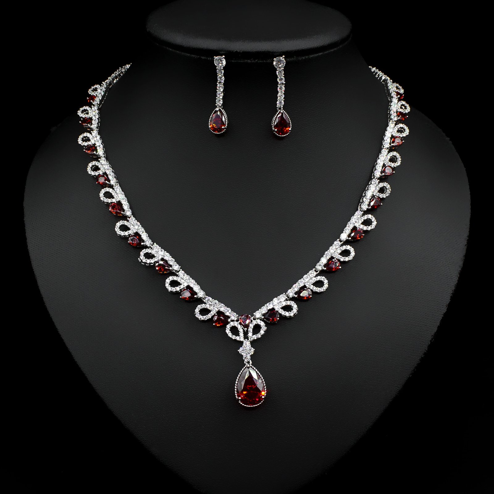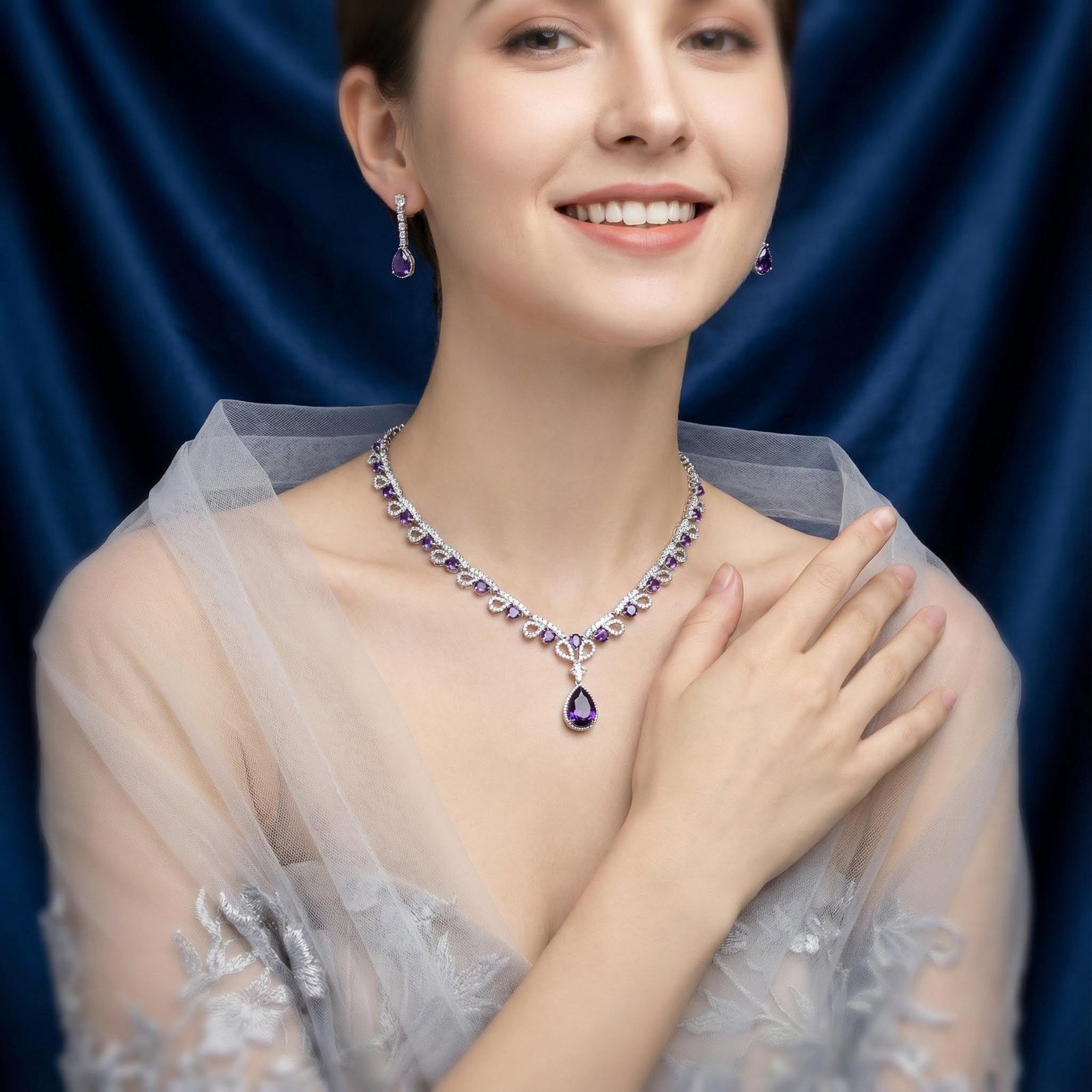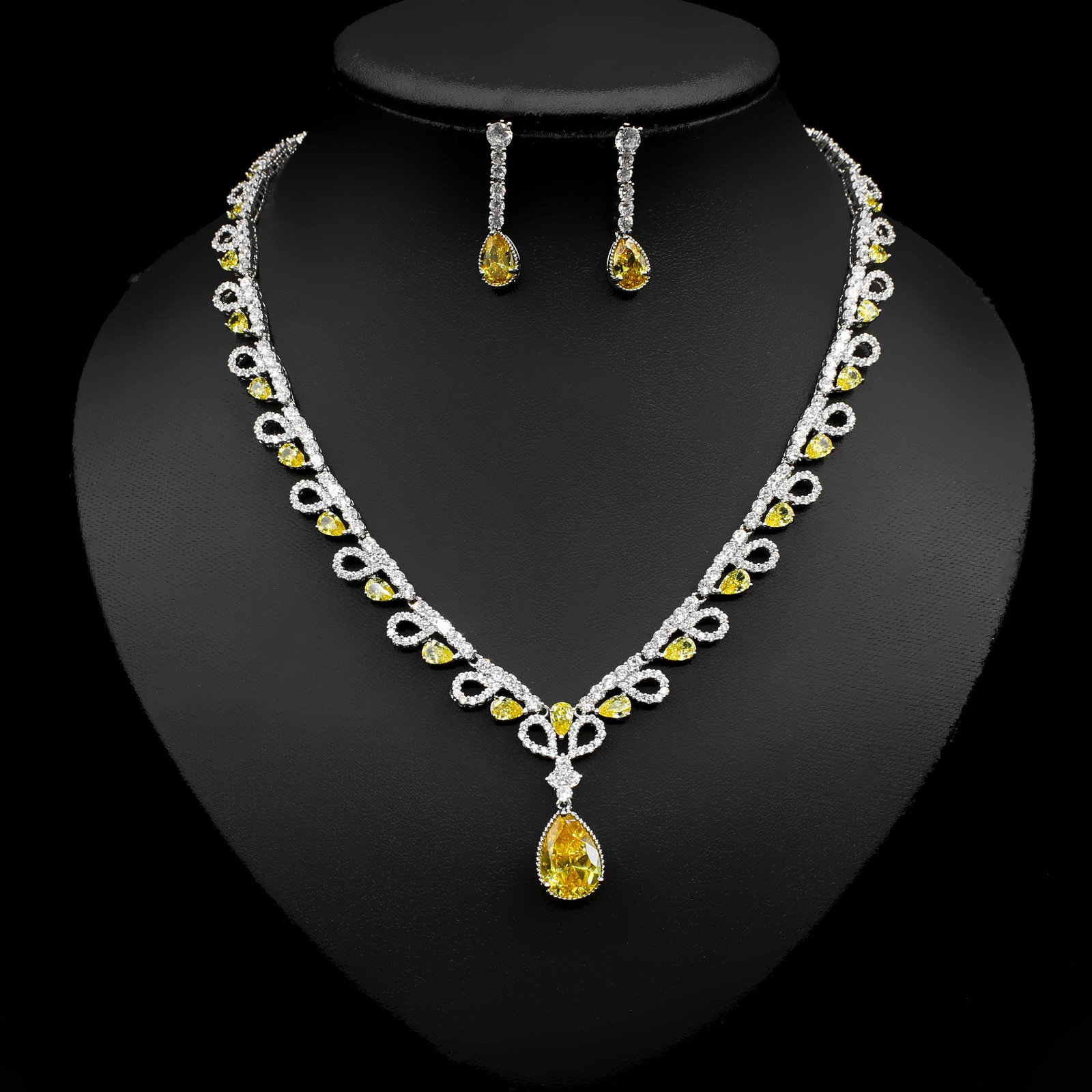 Crafted with shimmering zircon stones that mimic the brilliance of diamonds, this set delivers a high-end, luminous finish that catches the light with every movement. Whether you’re dressing up for a wedding, banquet, evening party, or enhancing your daily fashion look, this necklace and earrings duo adds radiant brilliance and elegant sophistication to your wardrobe. Designs like this are popular because they pair well with bridal attire as well as modern street and evening styles.