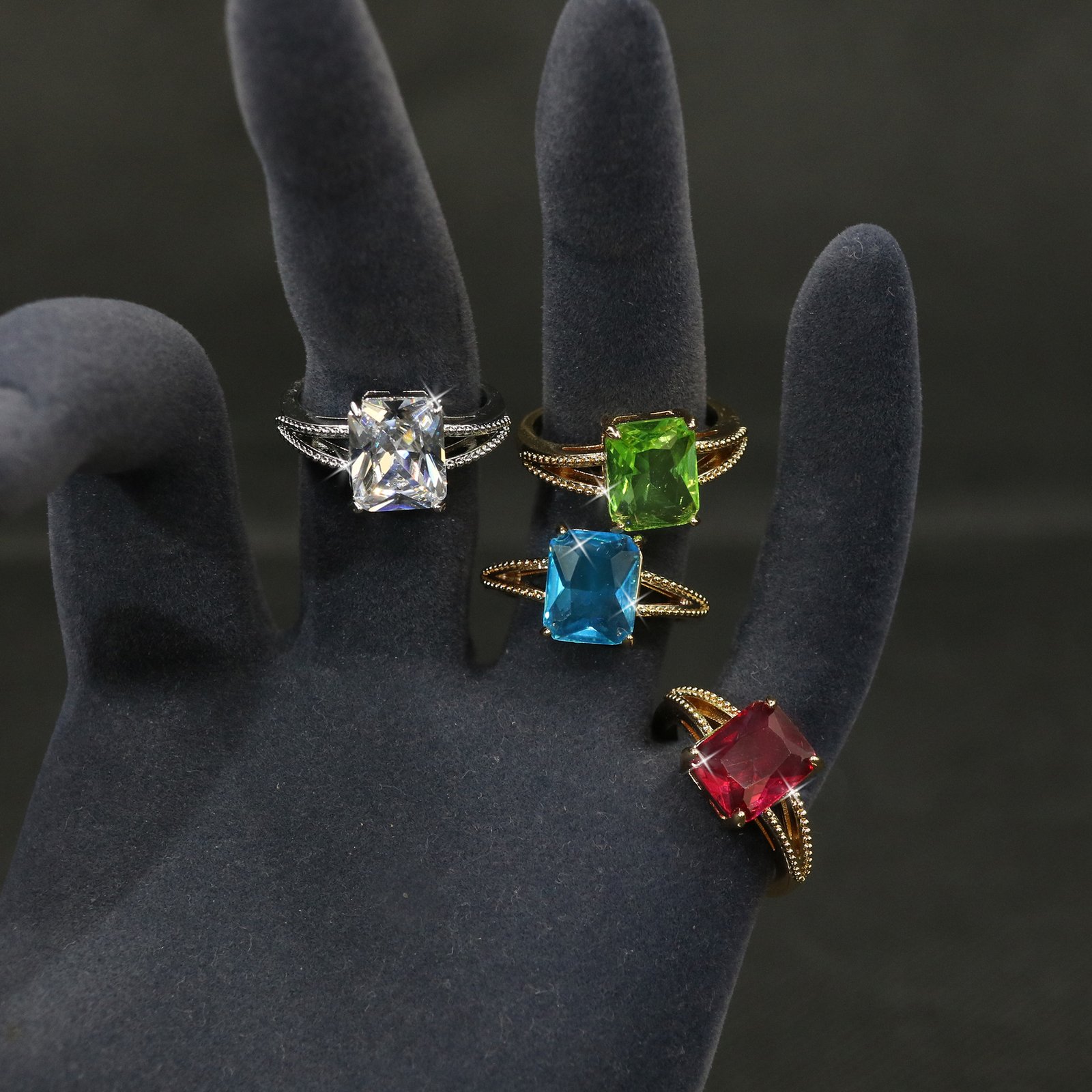 💎 Square zircon centerpiece with radiant sparkle