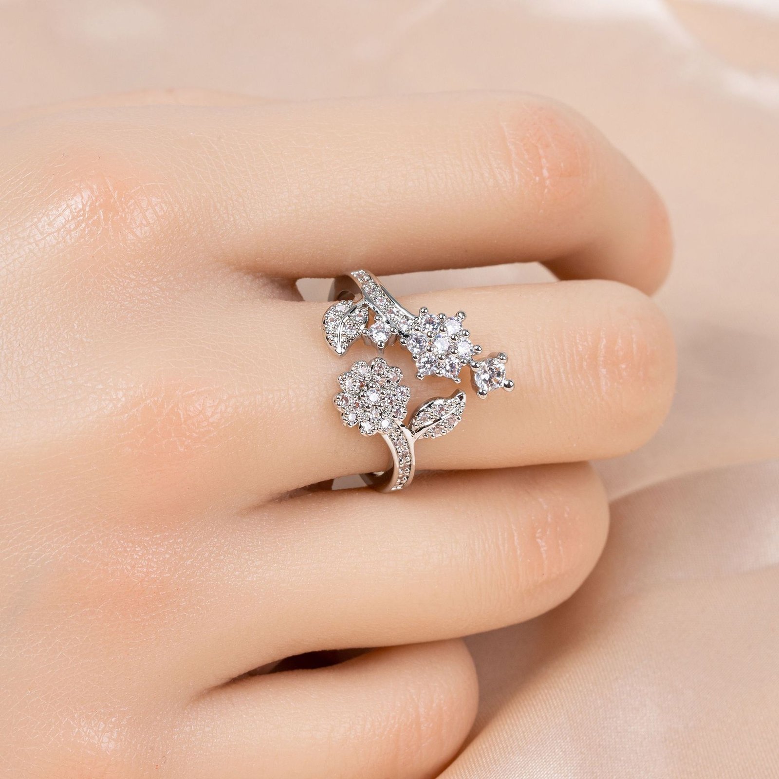 Elevate your jewelry collection with this Light Luxury High-End Diamond Camellia Open Ring, thoughtfully designed for modern women who appreciate elegant, niche fashion accessories. The open ring features a Camellia-inspired floral motif accented with brilliant diamond-style stones that catch the light beautifully, adding subtle glamour to any outfit.