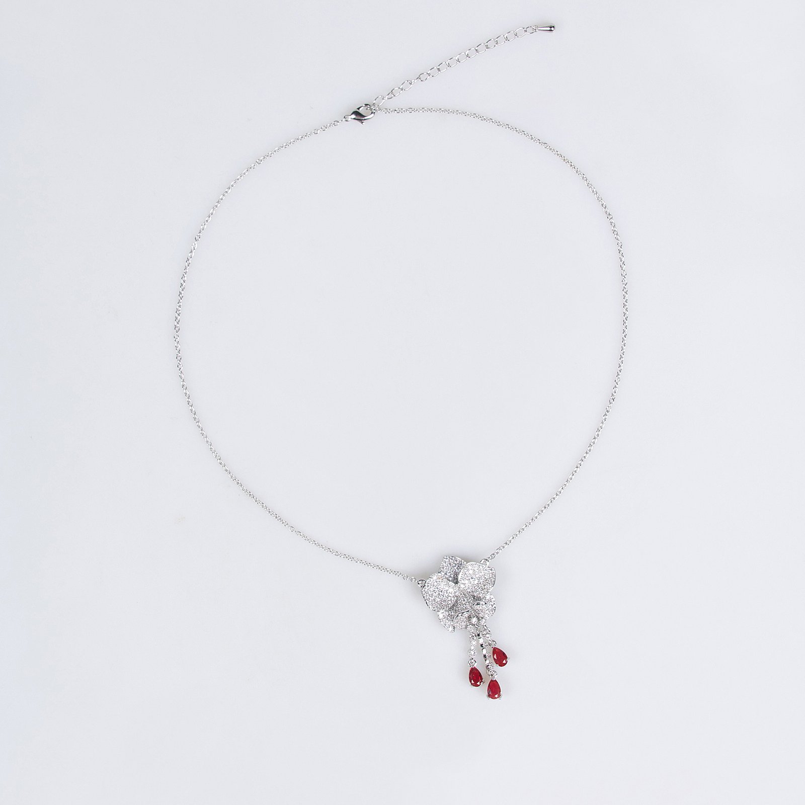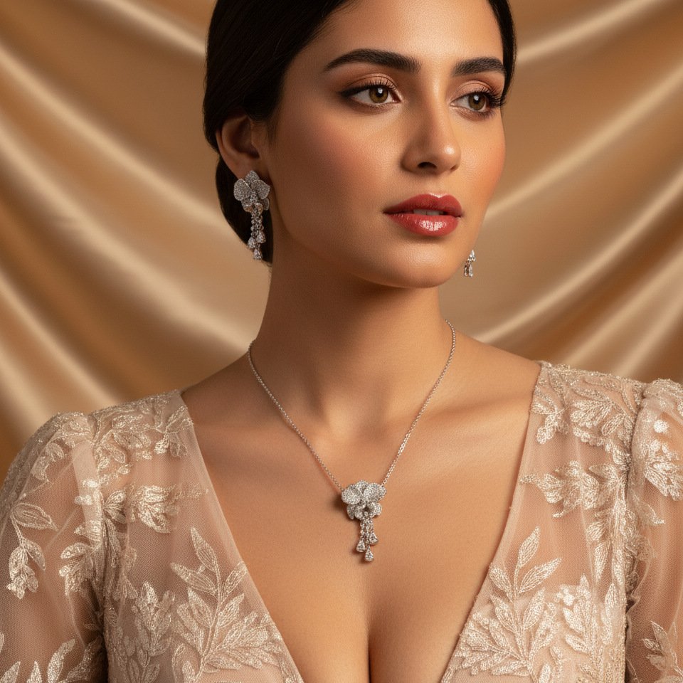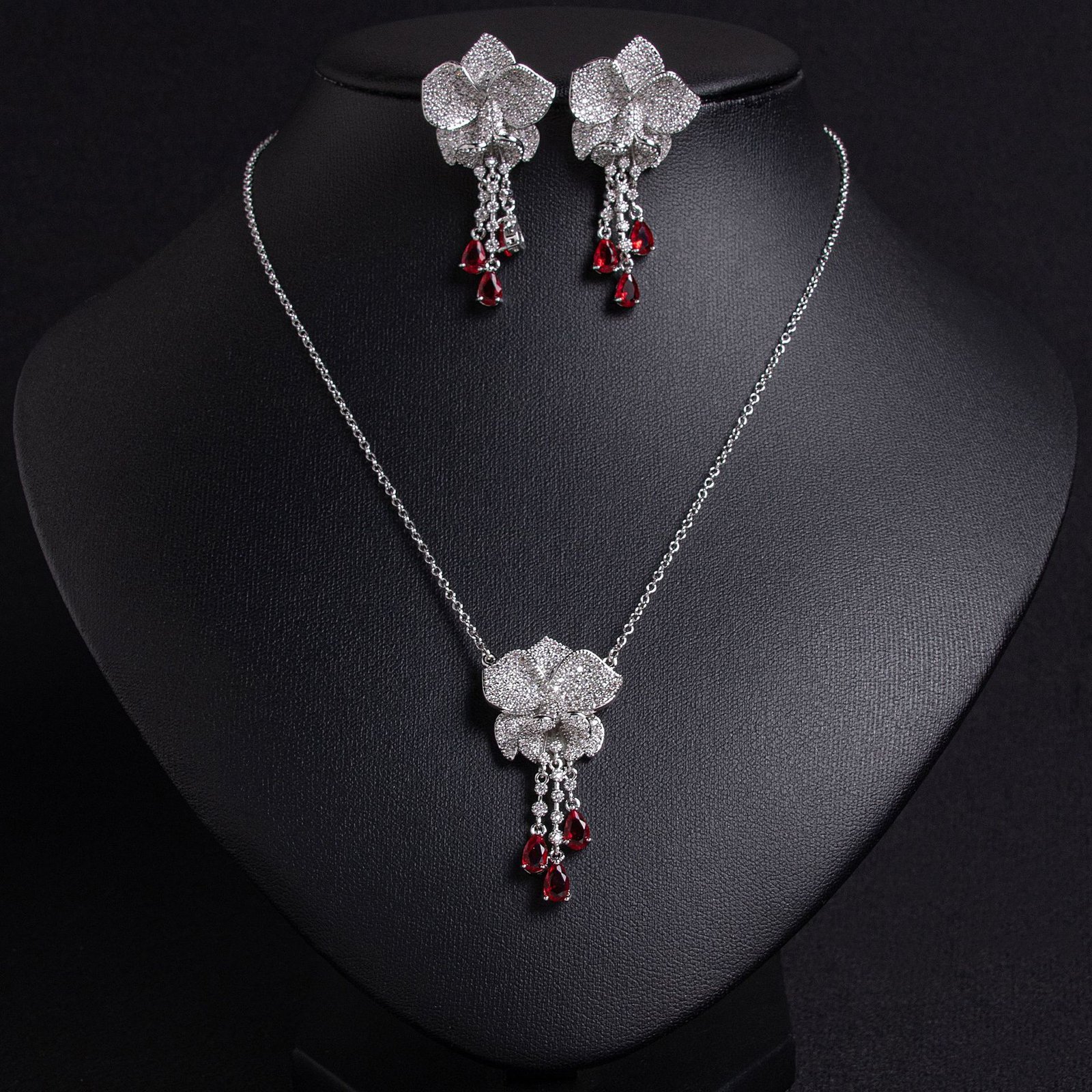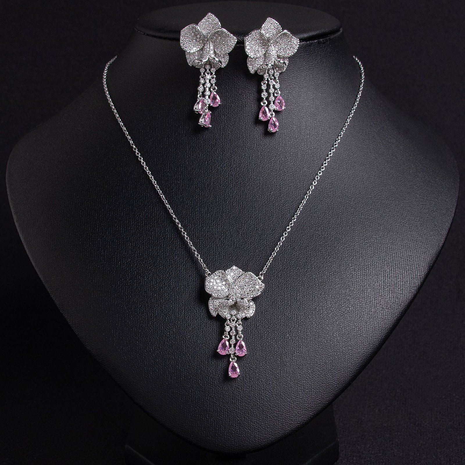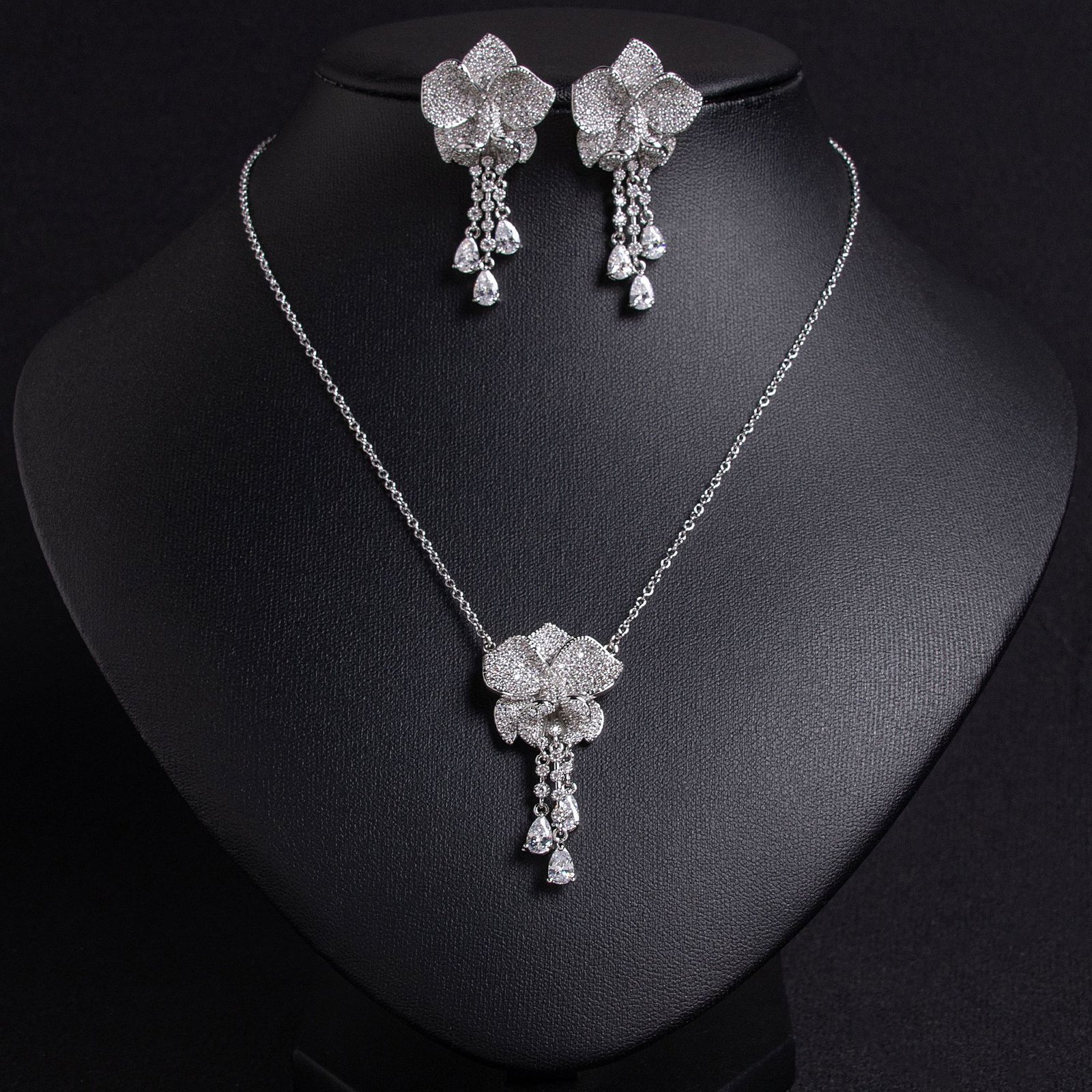 Light Luxury Tassel Long Zircon Earrings & Necklace Set — High‑End Floral Niche Design
