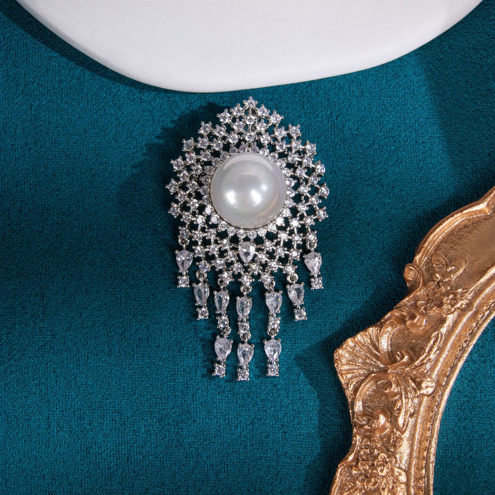Luxurious Diamond & Pearl Brooch — High‑End Elegant Jewelry Accessory for Women