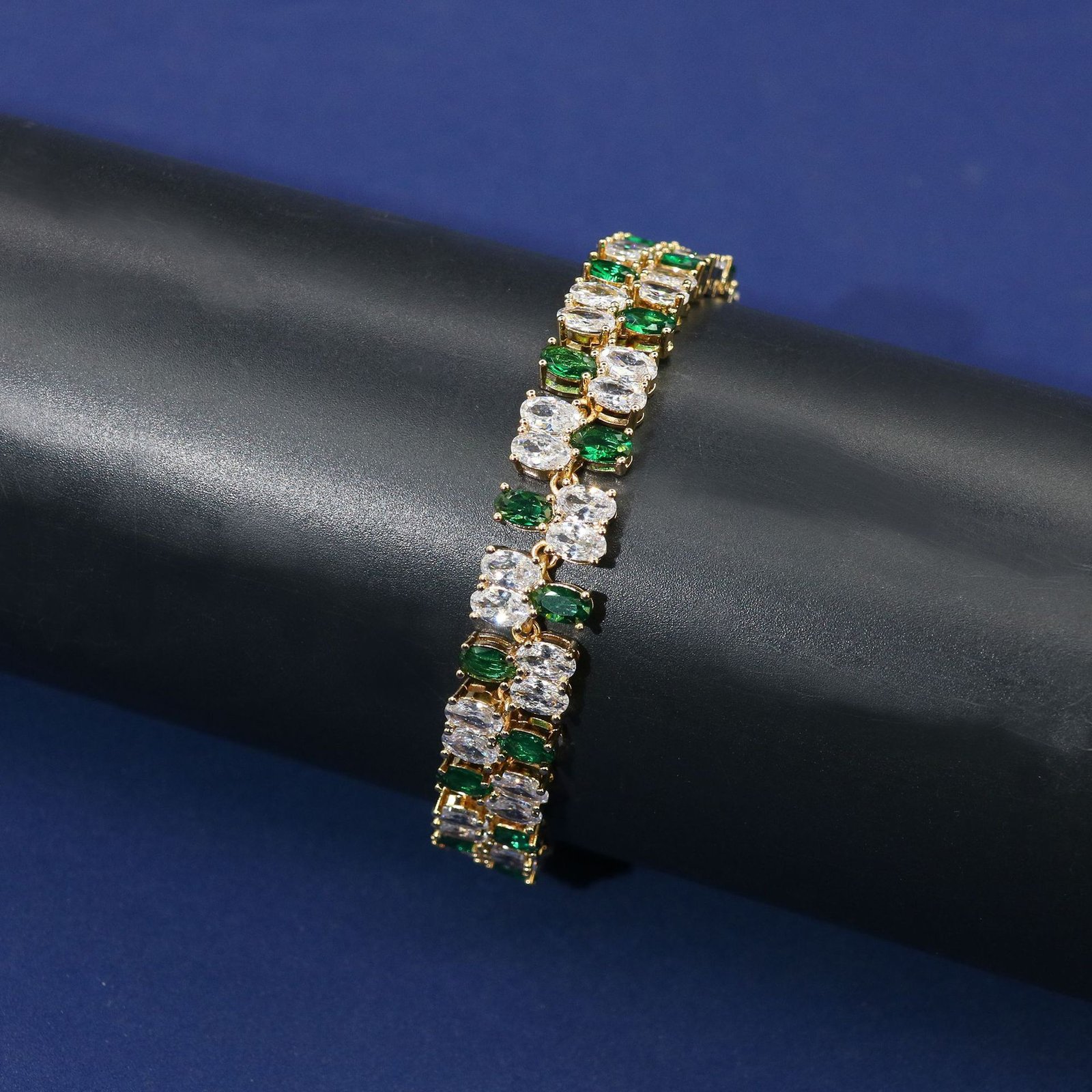 Elevate your jewelry collection with this Luxury Emerald & Red Corundum Zircon Bracelet — a refined piece that merges vibrant gemstone‑inspired accents with sparkling zircon stones for a statement look. Designed to reflect European and American fashion aesthetics, this bracelet showcases rich green and warm red tones that bring color and charm to any outfit.