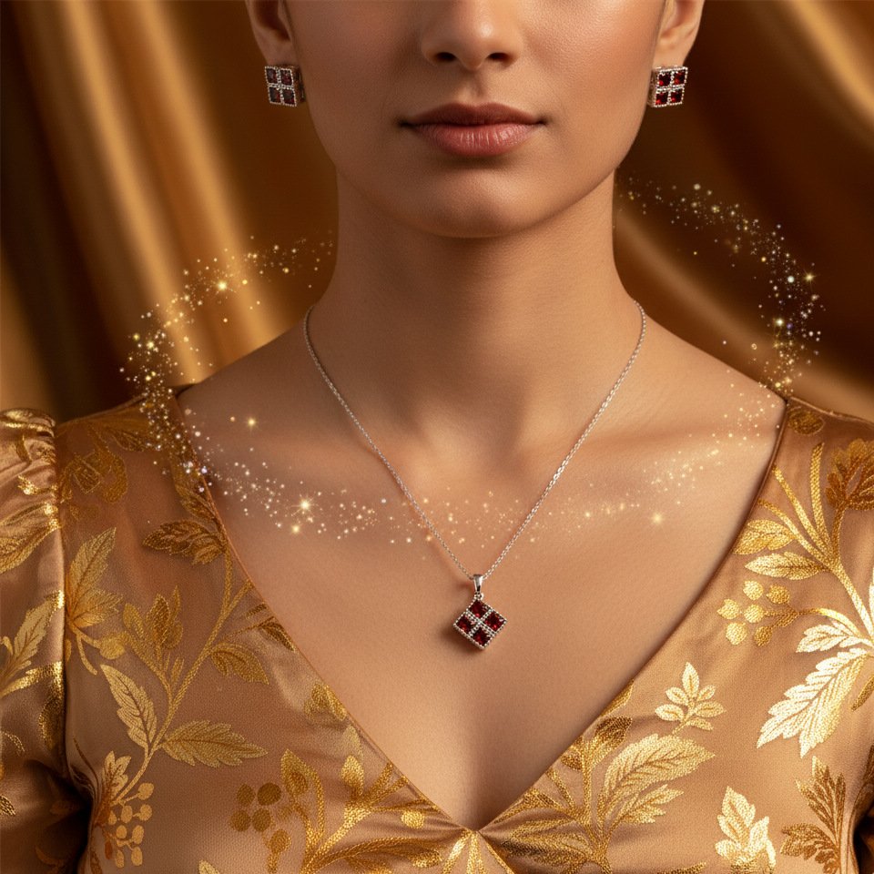 The geometric cube shape draws from contemporary jewelry trends that embrace bold motifs and quirky charm. Cube‑style necklaces — including Rubik’s cube pendants — have become eye‑catching accessories that blend playfulness with modern design. The shimmering zircon or crystal inlays enhance the diamond‑like shine, giving this piece an elevated feel without being overly formal.