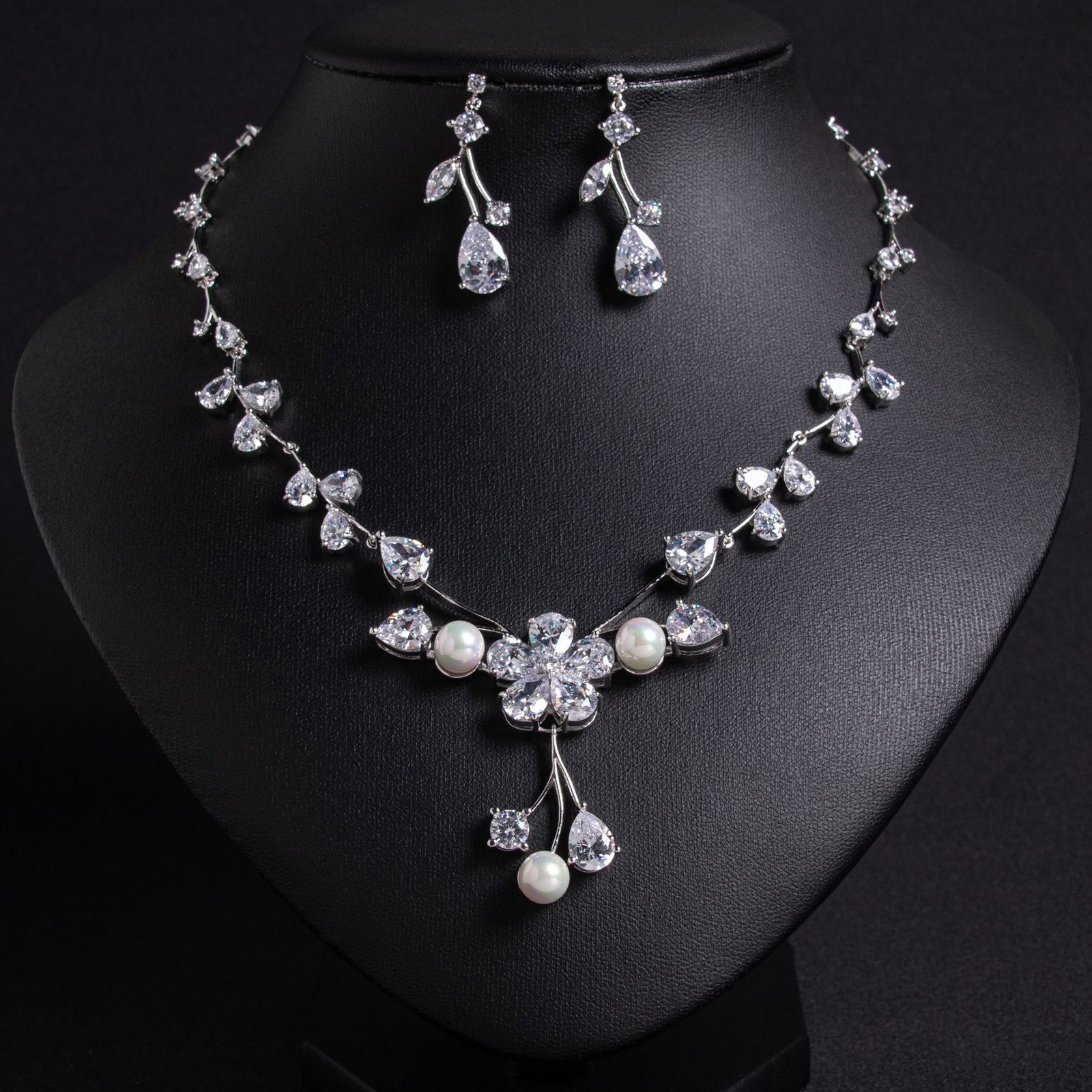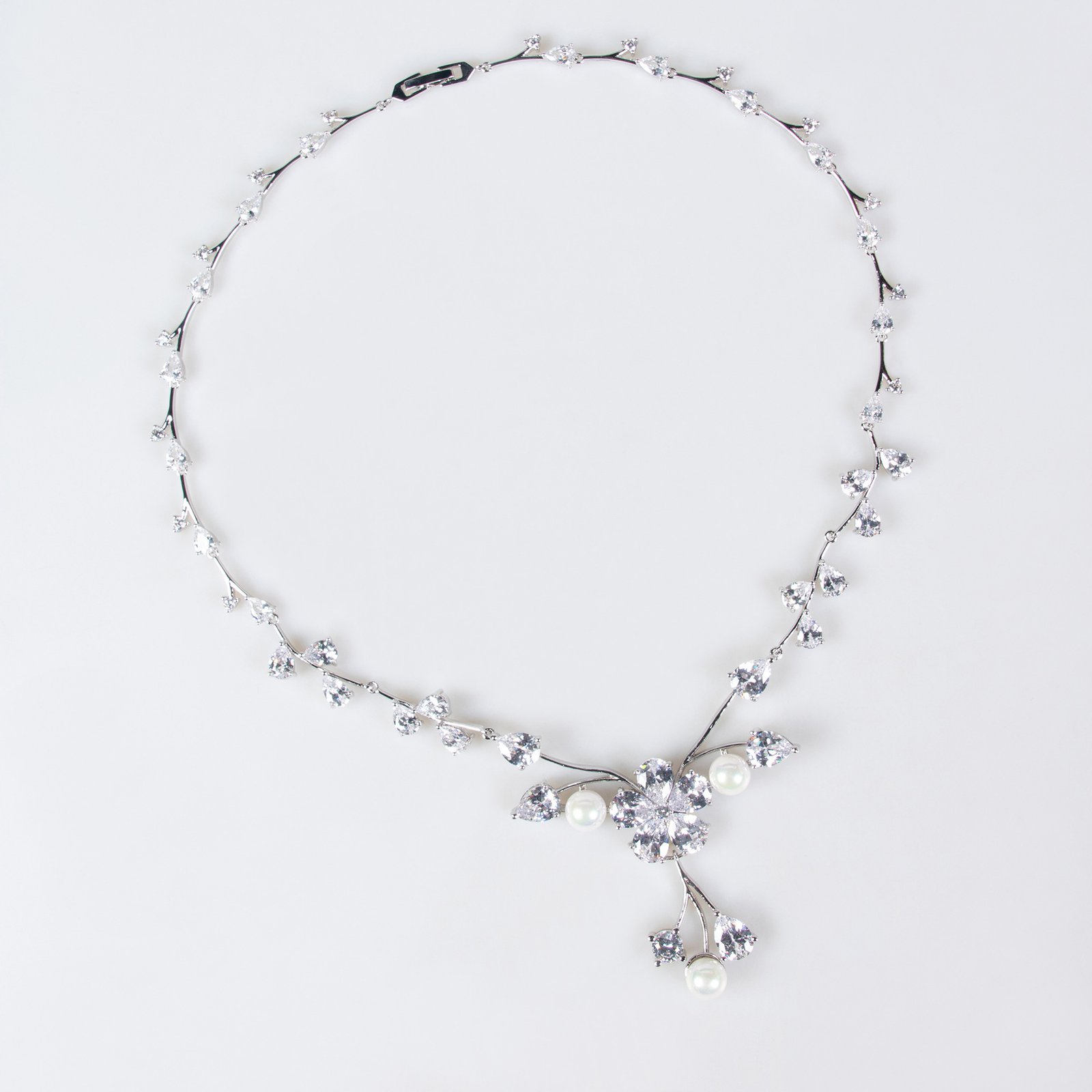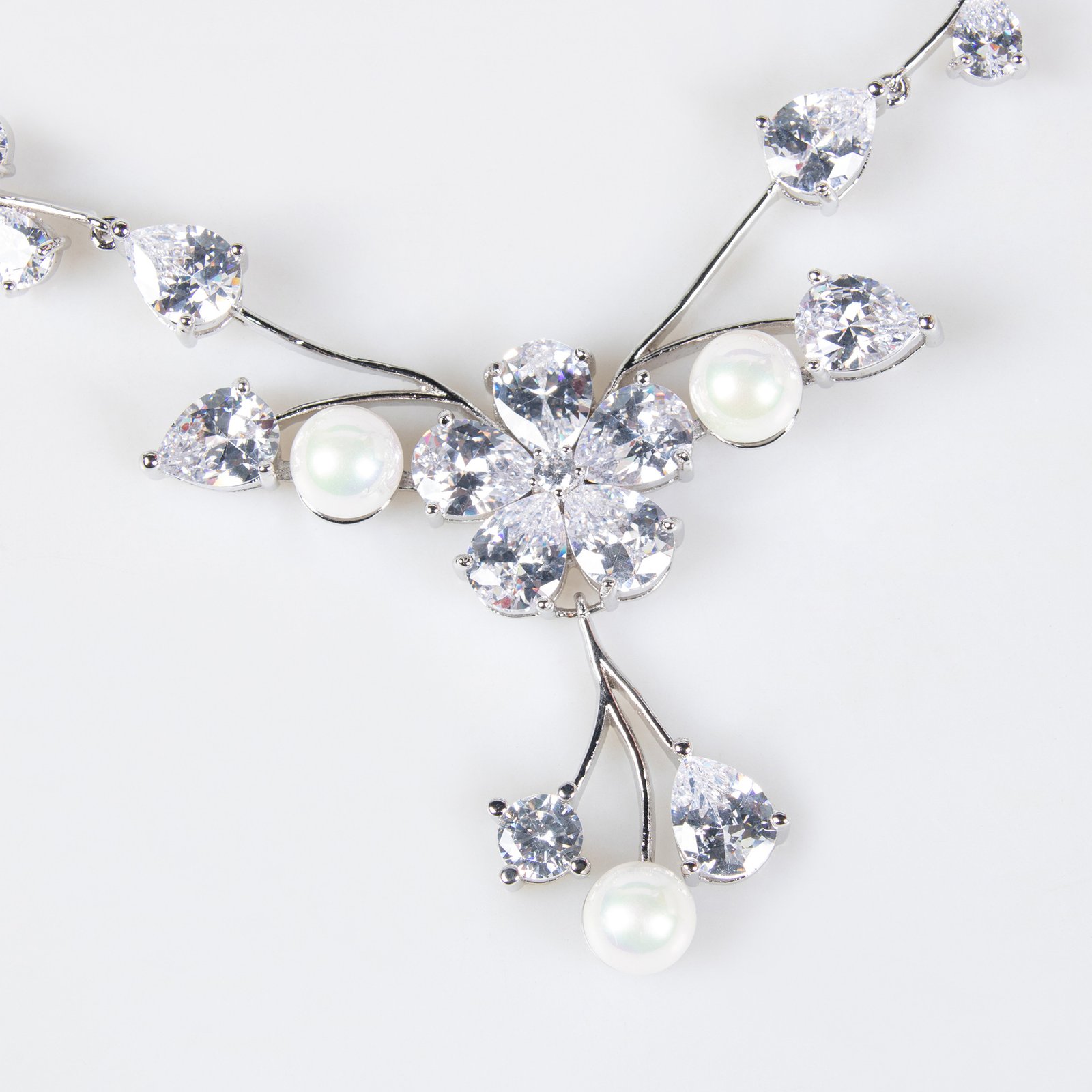 Elegant flower-shaped zircon necklace with matching earrings — a chic two-piece jewelry set perfect for weddings, parties, dates, banquets, and stylish everyday wear.