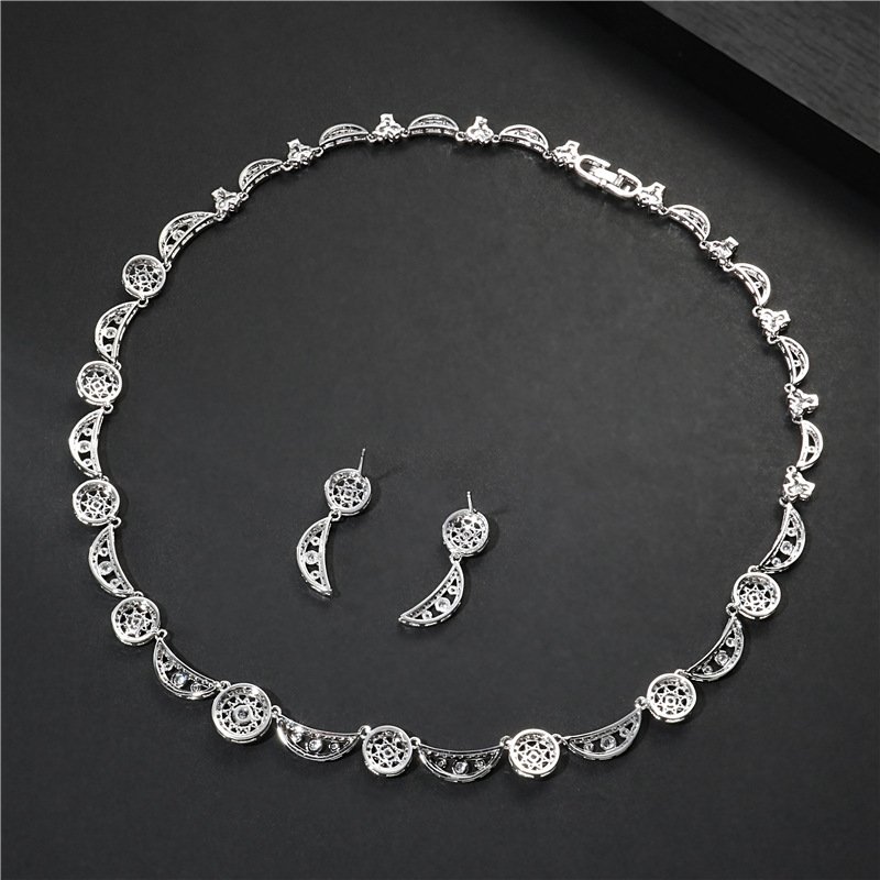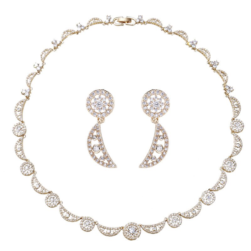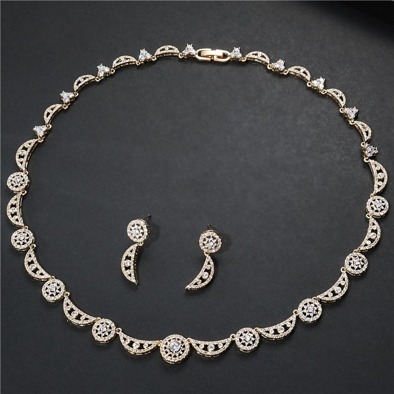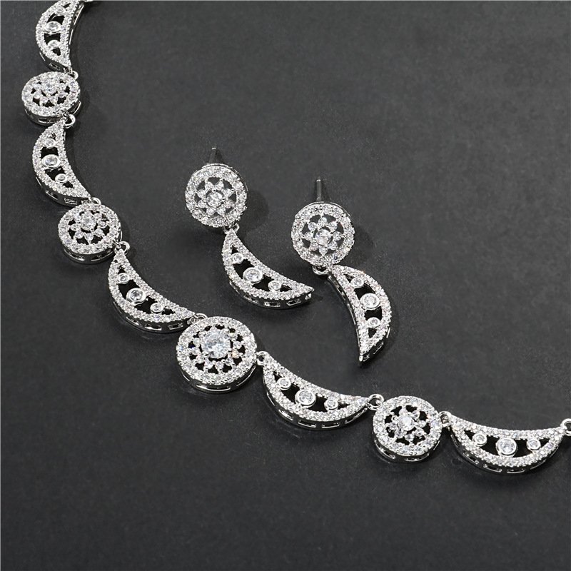 Inspired by celestial motifs, this jewelry set features radiant sun and moon shapes adorned with sparkling zircon stones that catch the light and bring brilliance to any look. The bold yet refined design makes it ideal for wedding attire, evening dresses, parties, or as a standout fashion accessory.