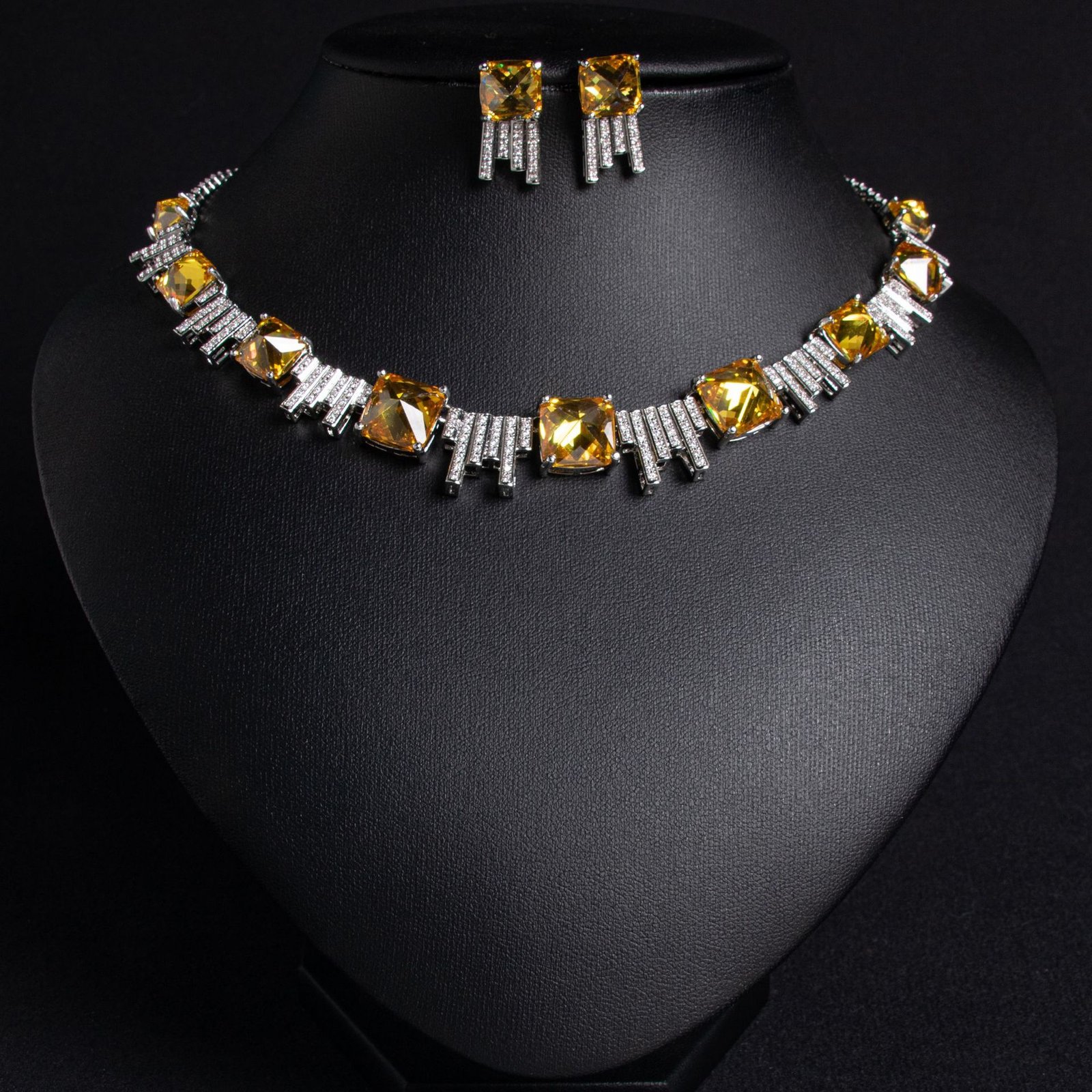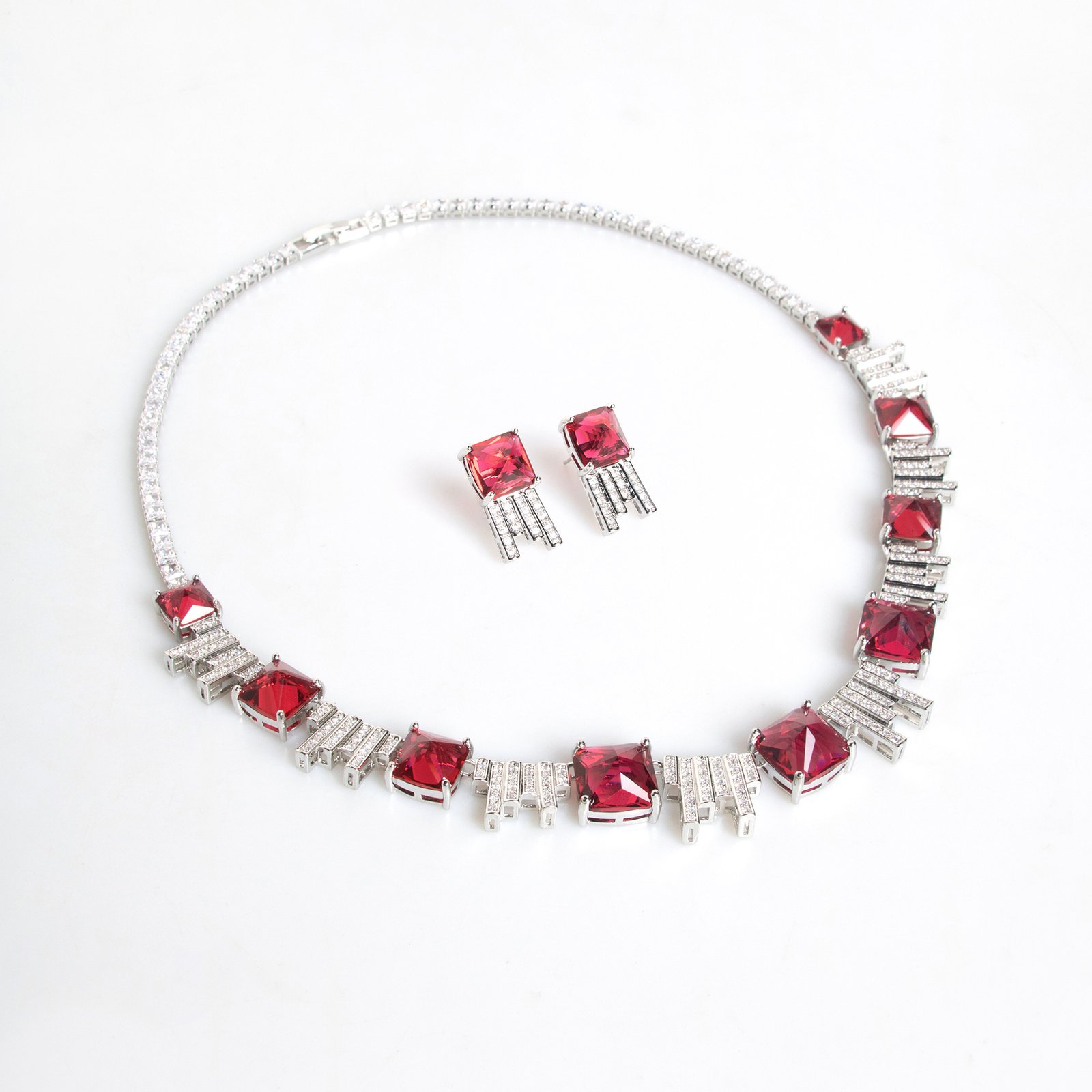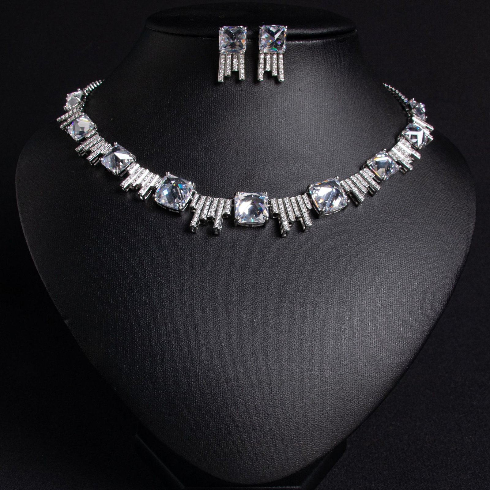 Square Zircon Bridal Necklace & Earrings Set — Elegant Wedding
