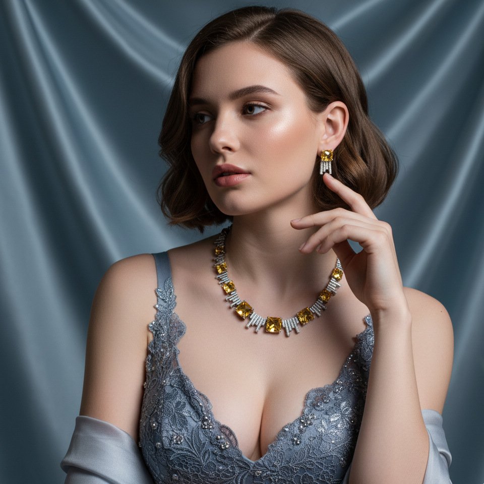 • Complete Necklace & Earrings Set: Includes a coordinated necklace and matching earrings for a polished, harmonious appearance at events.