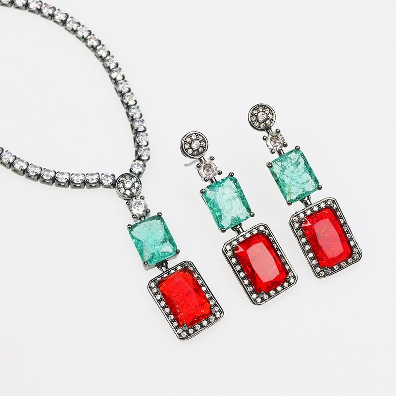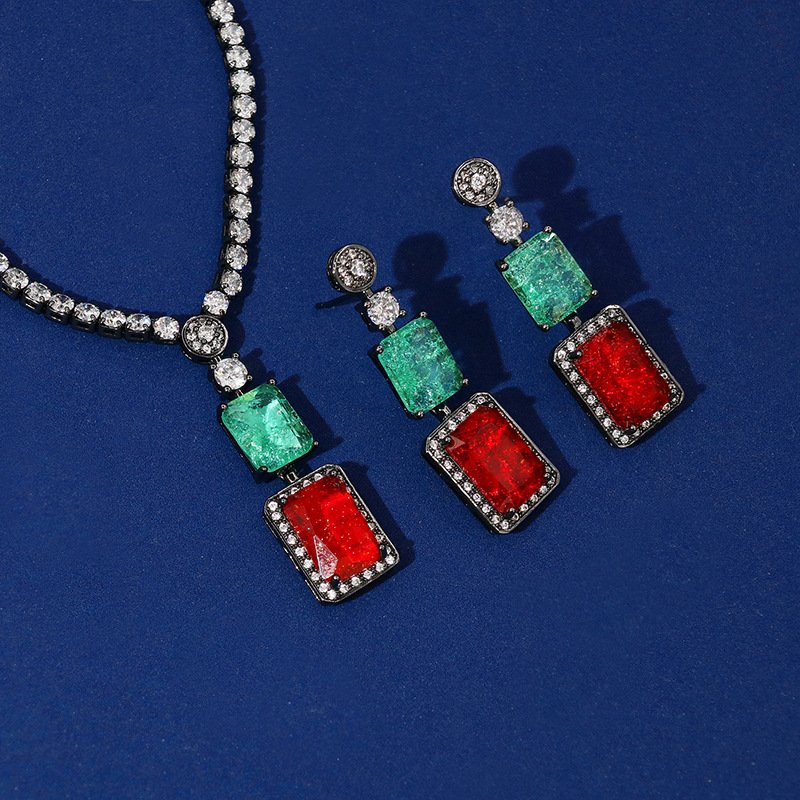 A chic European & American‑inspired square zircon necklace and matching earrings set featuring an exaggerated, niche design and elegant clavicle chain — perfect for weddings, parties, formal occasions, and high‑fashion looks.