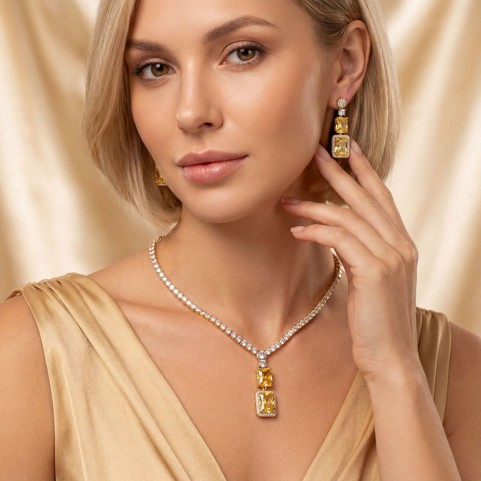 The exaggerated design with an elegant clavicle chain adds an eye‑catching focal point to your neckline, while the versatile square motif makes this set ideal for bridal wear, evening dresses, banquet outfits, or everyday chic fashion. Whether worn for weddings, parties, or special celebrations, it enhances both formal and casual attire with sophistication and sparkle.