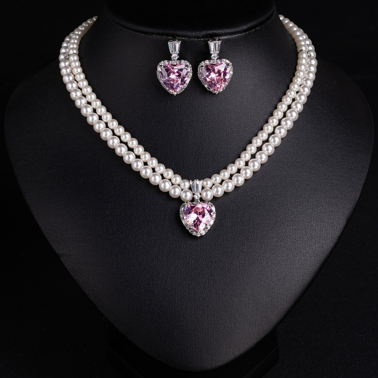 Summer Imitation Pearl Double-Layer Necklace & Earrings Set — Love Pendant Fashion Jewelry