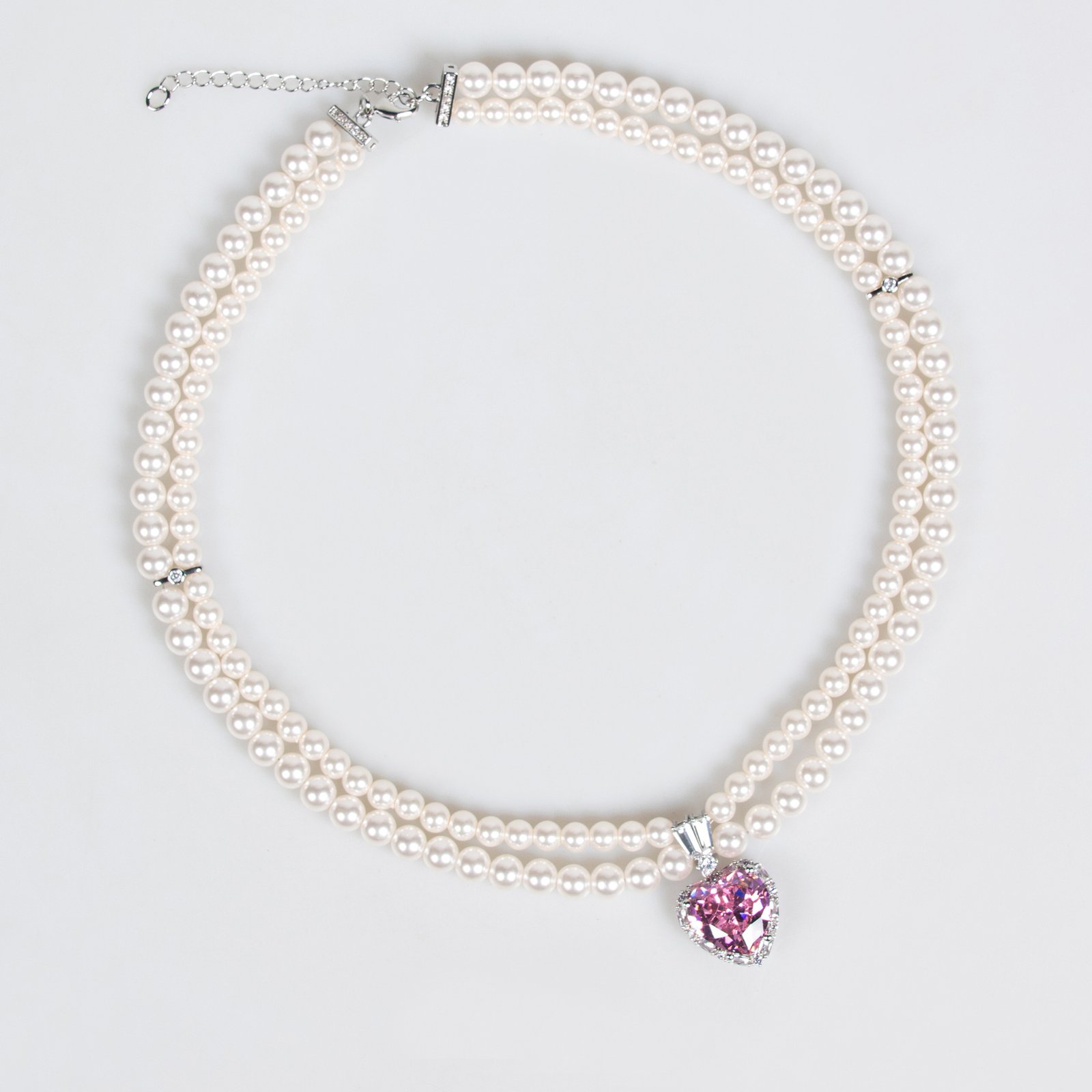Double-layer faux pearl necklace with love-themed pendant