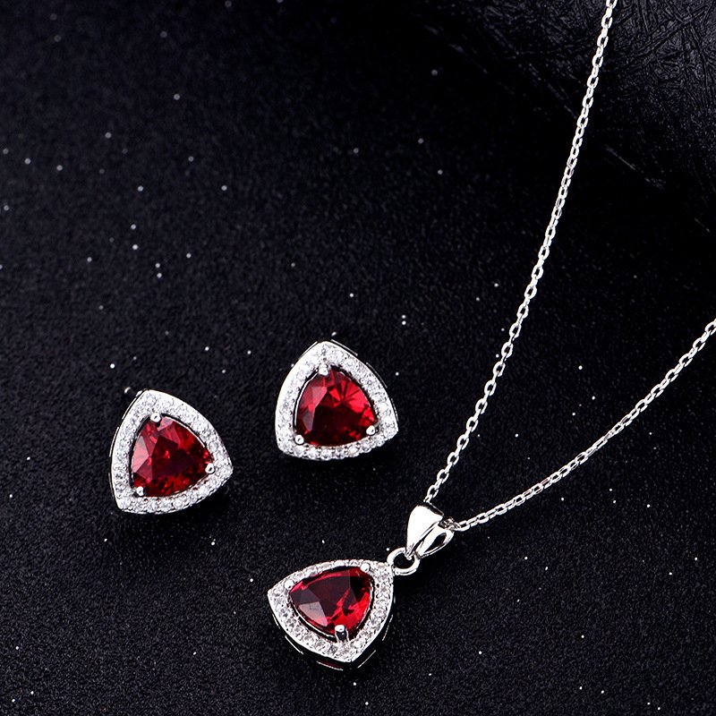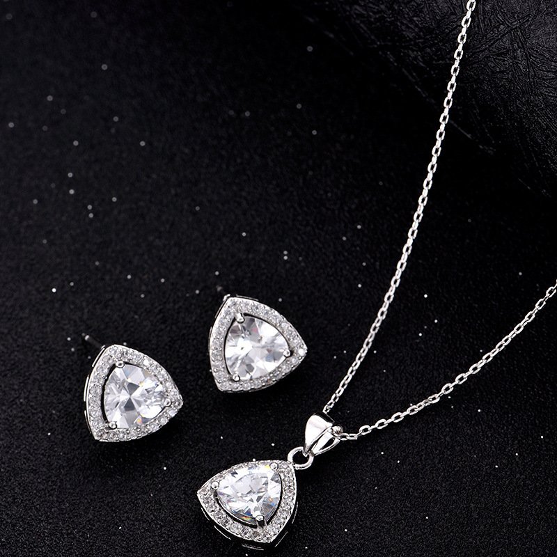 Make a stylish statement with this Triangle Peach Heart Zircon Necklace & Earrings Set — a beautiful jewelry ensemble inspired by South Korean fashion trends and hot-selling net-red styles.
