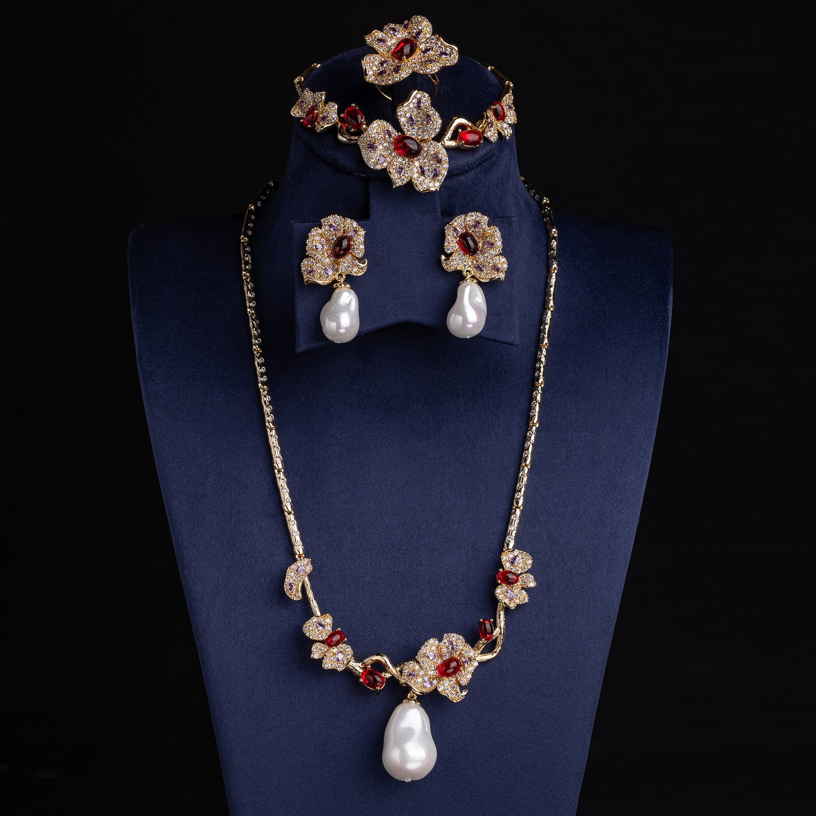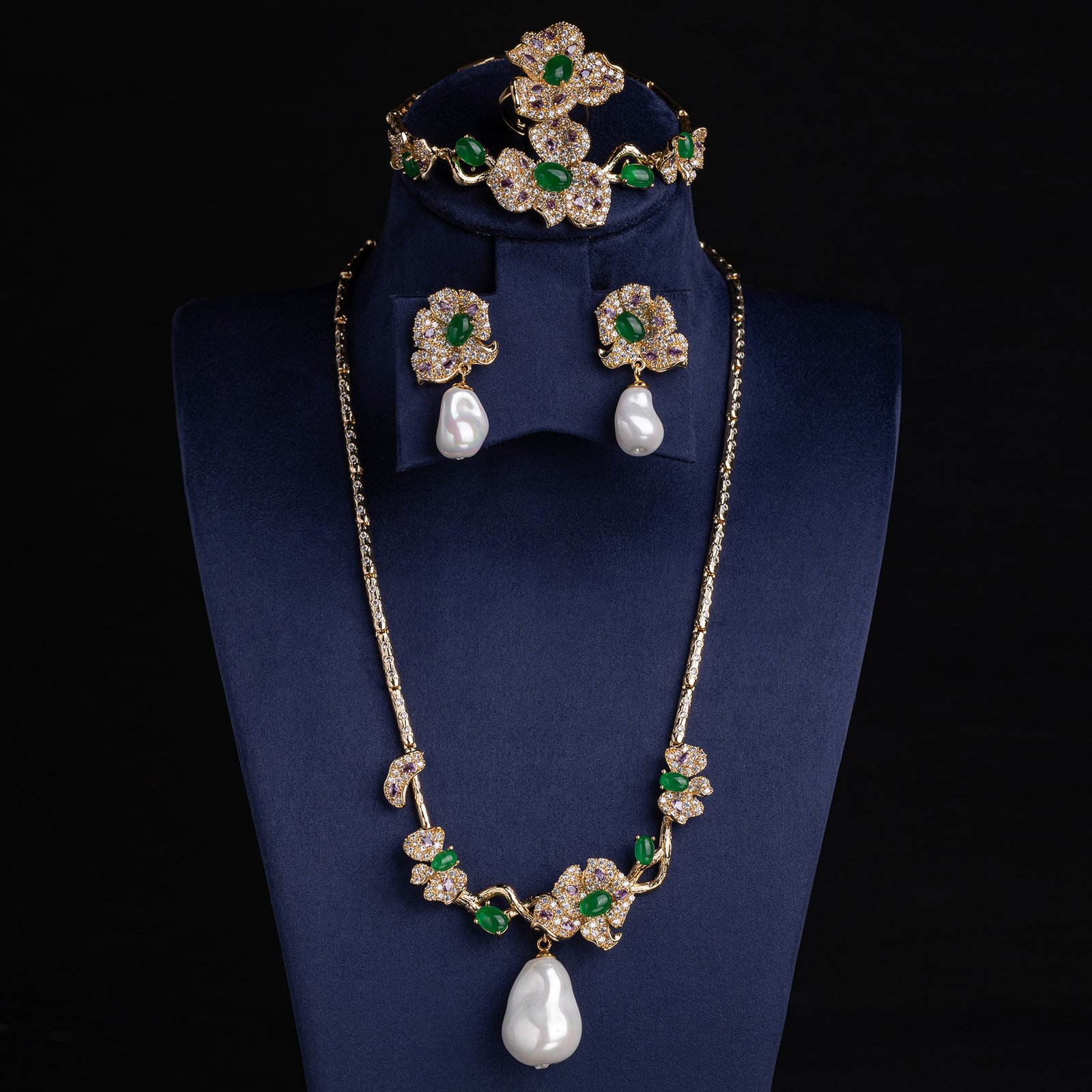 Elevate your elegance with this Unique Red & Green Zircon Leaf Pendant Necklace, a high‑end luxury accessory that blends refined design with vibrant gemstone accents. This exquisite piece features a beautifully crafted leaf‑inspired pendant in red and green zircon, accented with dazzling diamond‑like stones and lustrous pearls for an understated yet luxurious aesthetic.